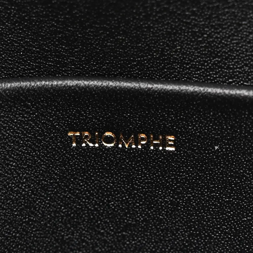 This Celine Small Triomphe Chain Shoulder Bag in Black features shiny calfskin leather with gold hardware. The chain strap adds a luxurious touch to its modern design. Compact yet practical, it’s ideal for transitioning from day to night. The Triomphe clasp adds signature charm. An elegant and versatile accessory.