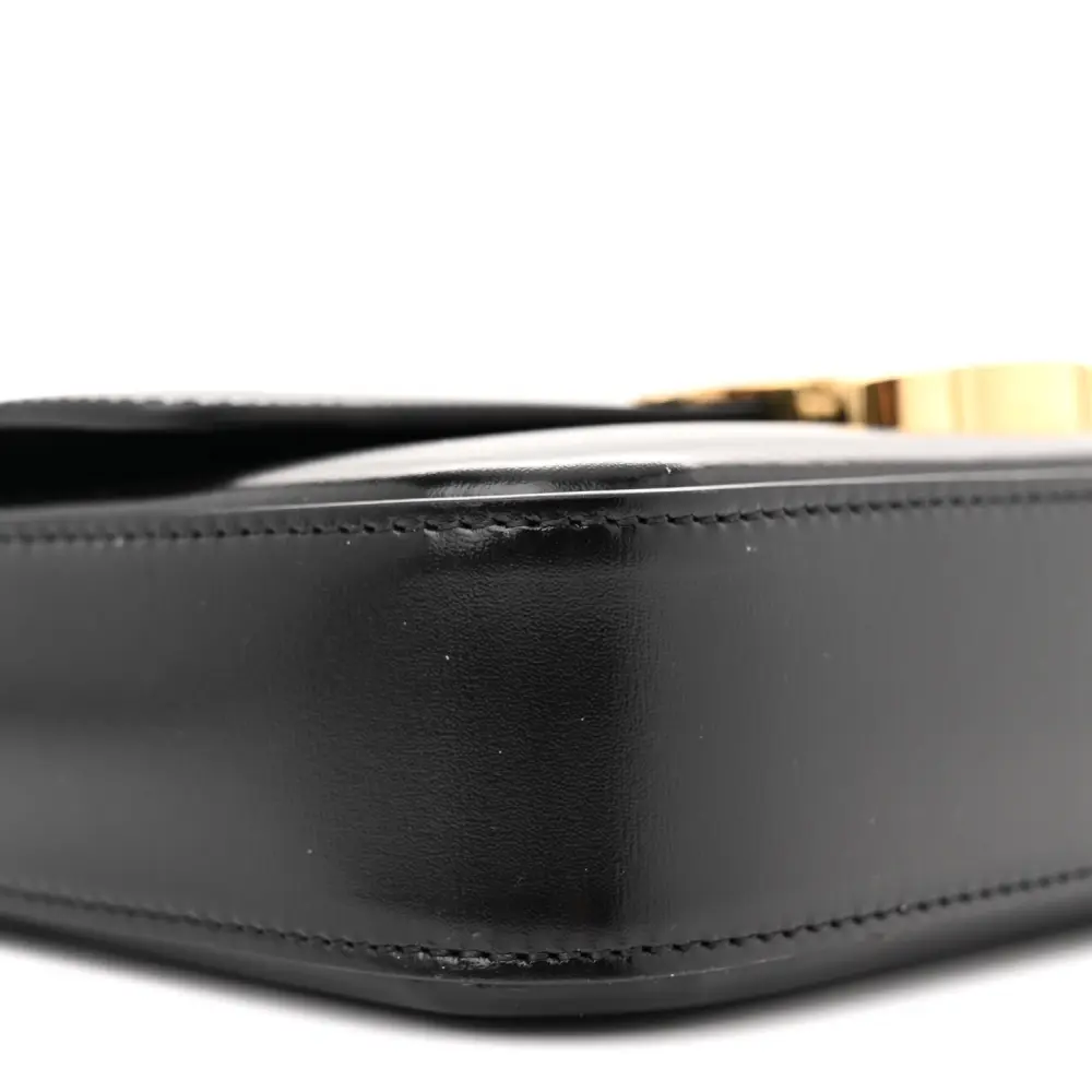 Celine Small Triomphe Chain Shoulder Bag Black Shiny Calfskin Leather Gold Hardware