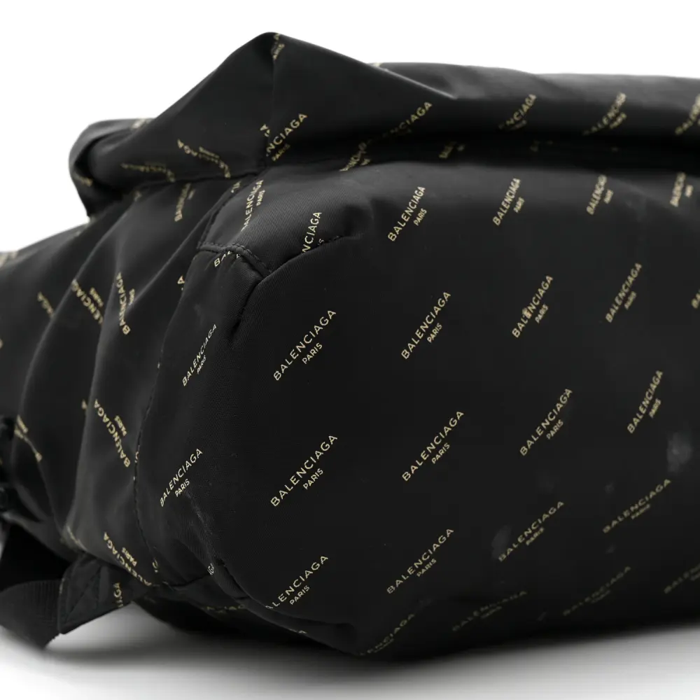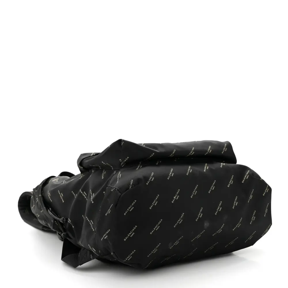 Balenciaga Medium Print Explorer Backpack Black/Gold Twill Nylon Allover Logo