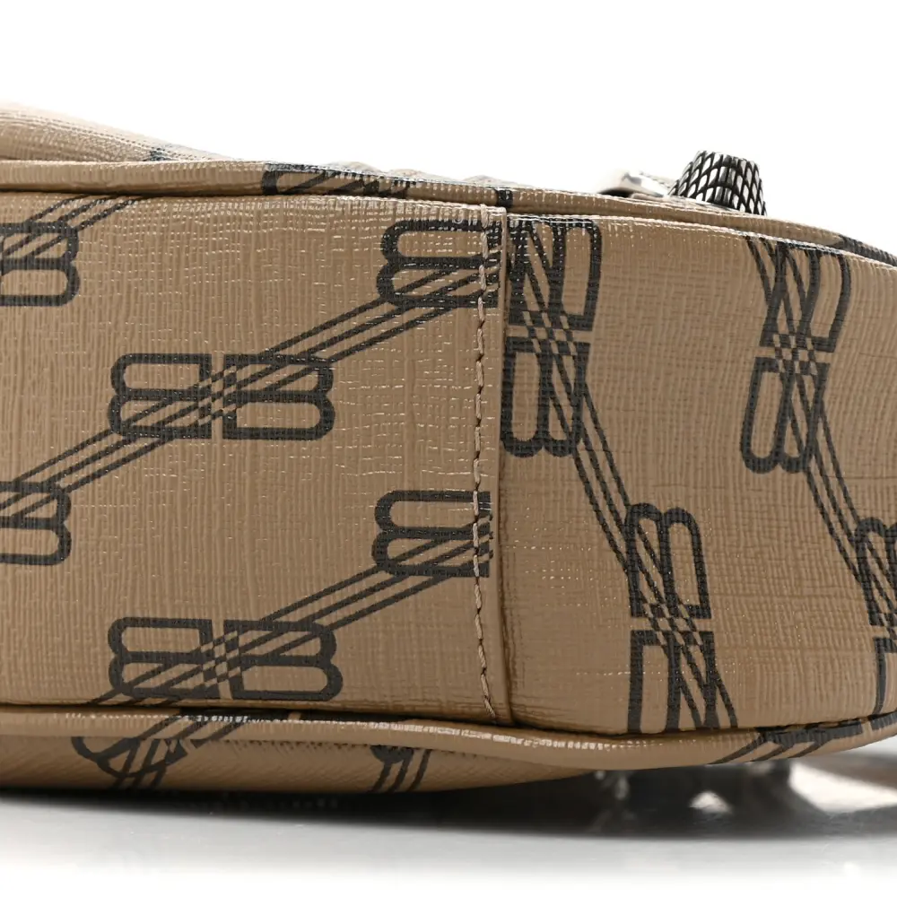 Balenciaga XS Le Cagole Shoulder Bag Beige/Brown Coated Canvas BB Monogram Silver Hardware