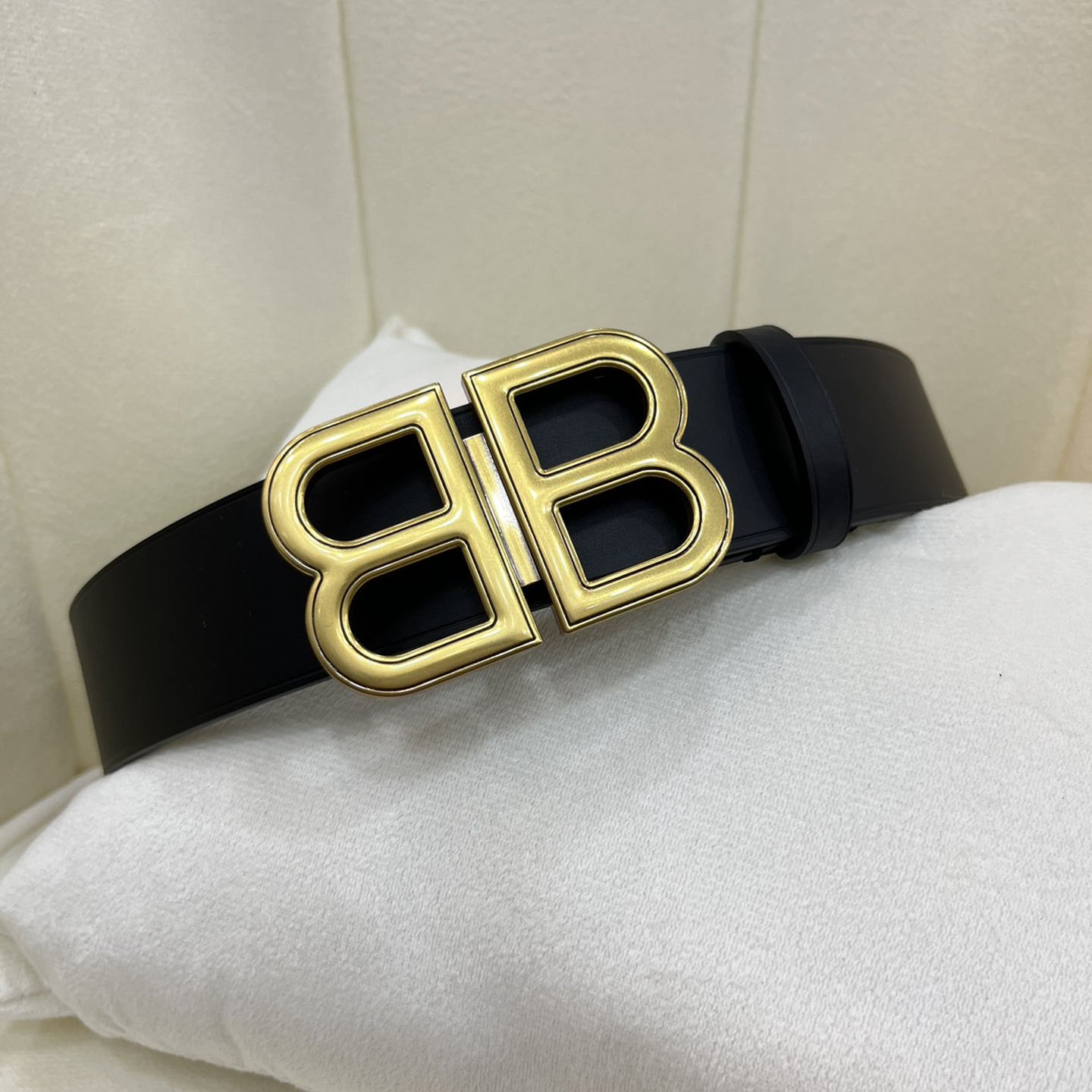 Balenciaga Men’s BB Hourglass Large Belt In Black Smooth Calfskin With Silver/Gold Hardware 40mm