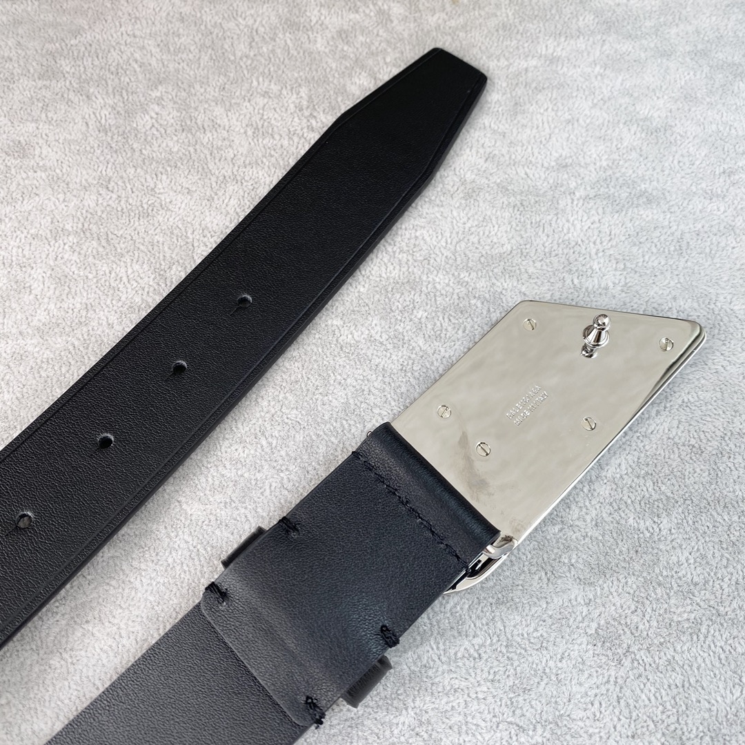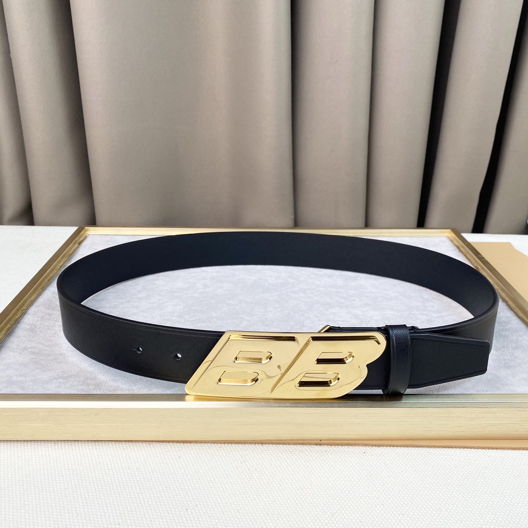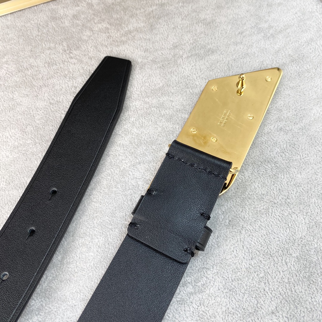 Balenciaga Men’s Moto Logo Belt In Black Natural Calfskin With Gold/Silver Hardware 35mm