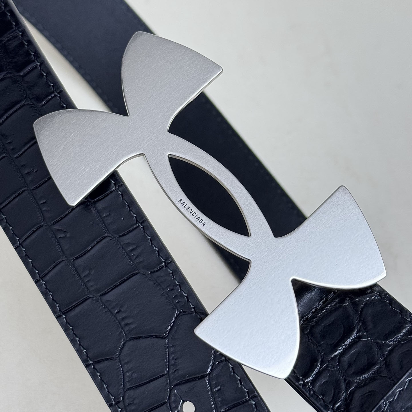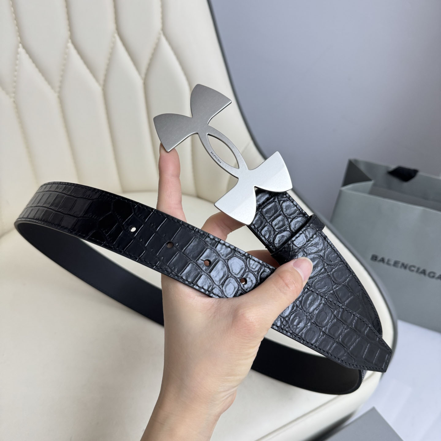 Balenciaga Men’s Under Armour Belt In Black Embossed Crocodile Calfskin With Gold/Silver Hardware 35mm