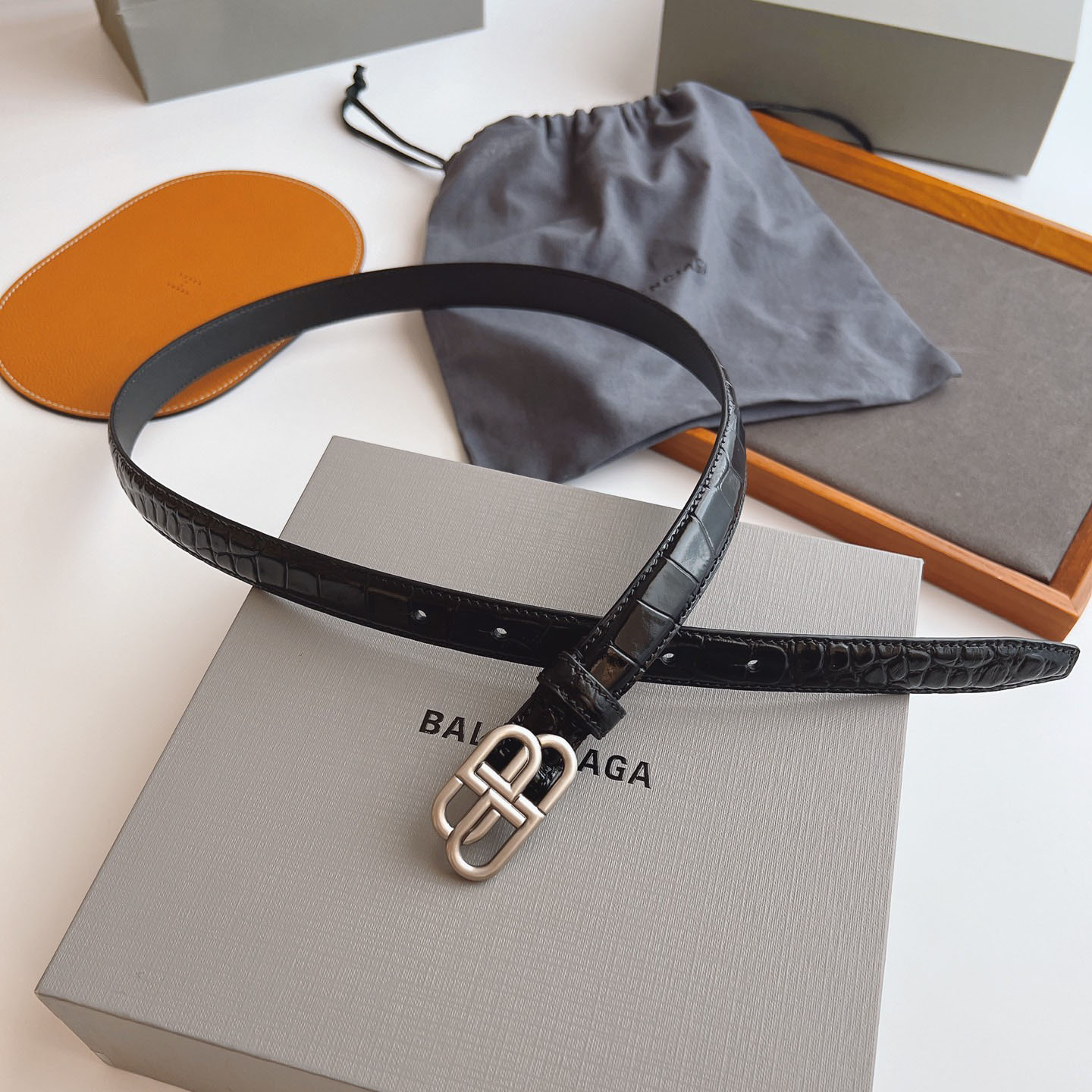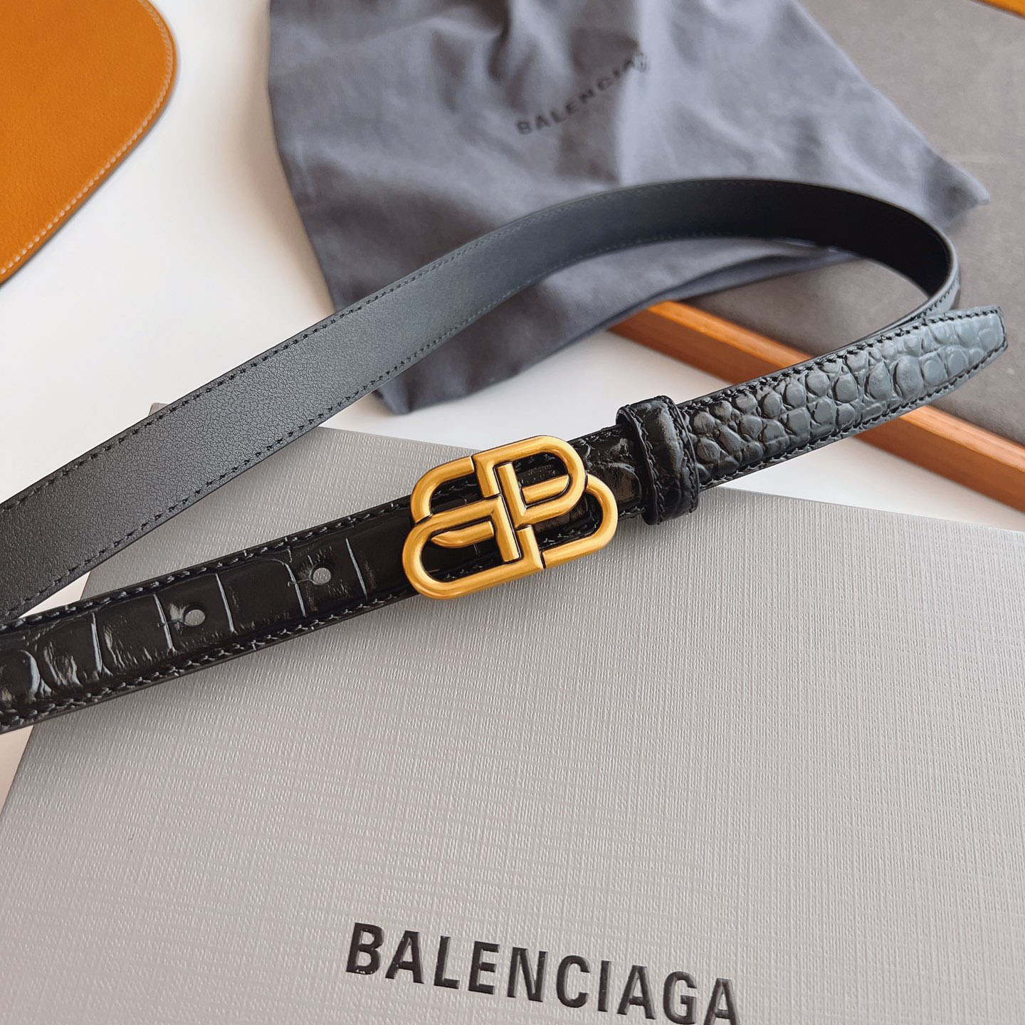 Balenciaga Women’s BB Thin Belt In Black Crocodile Embossed Calfskin With Gold/Silver Hardware 20mm
