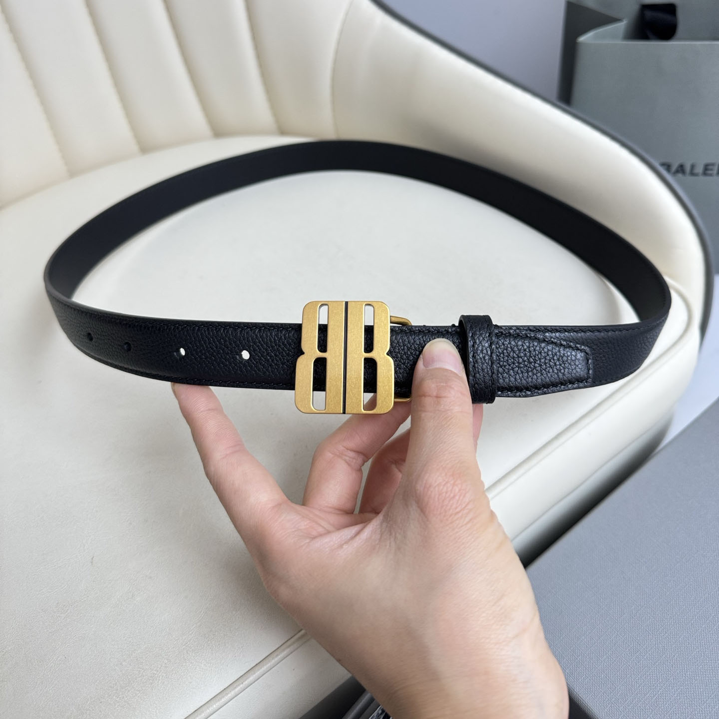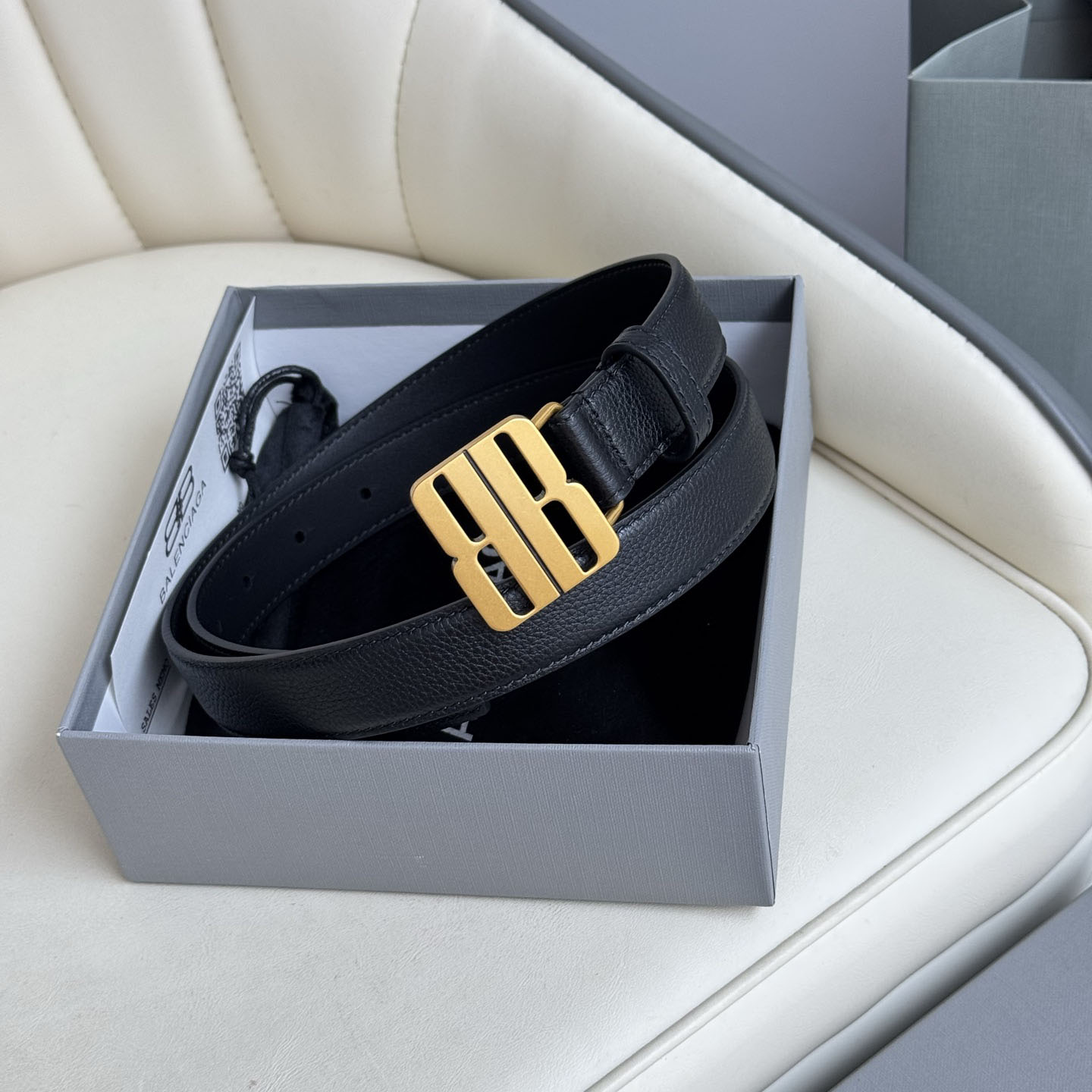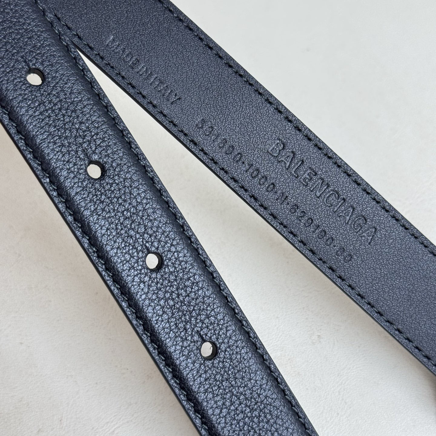 Balenciaga Women’s Nano Belt In Black Grained Calfskin With Gold/Silver Hardware 25mm