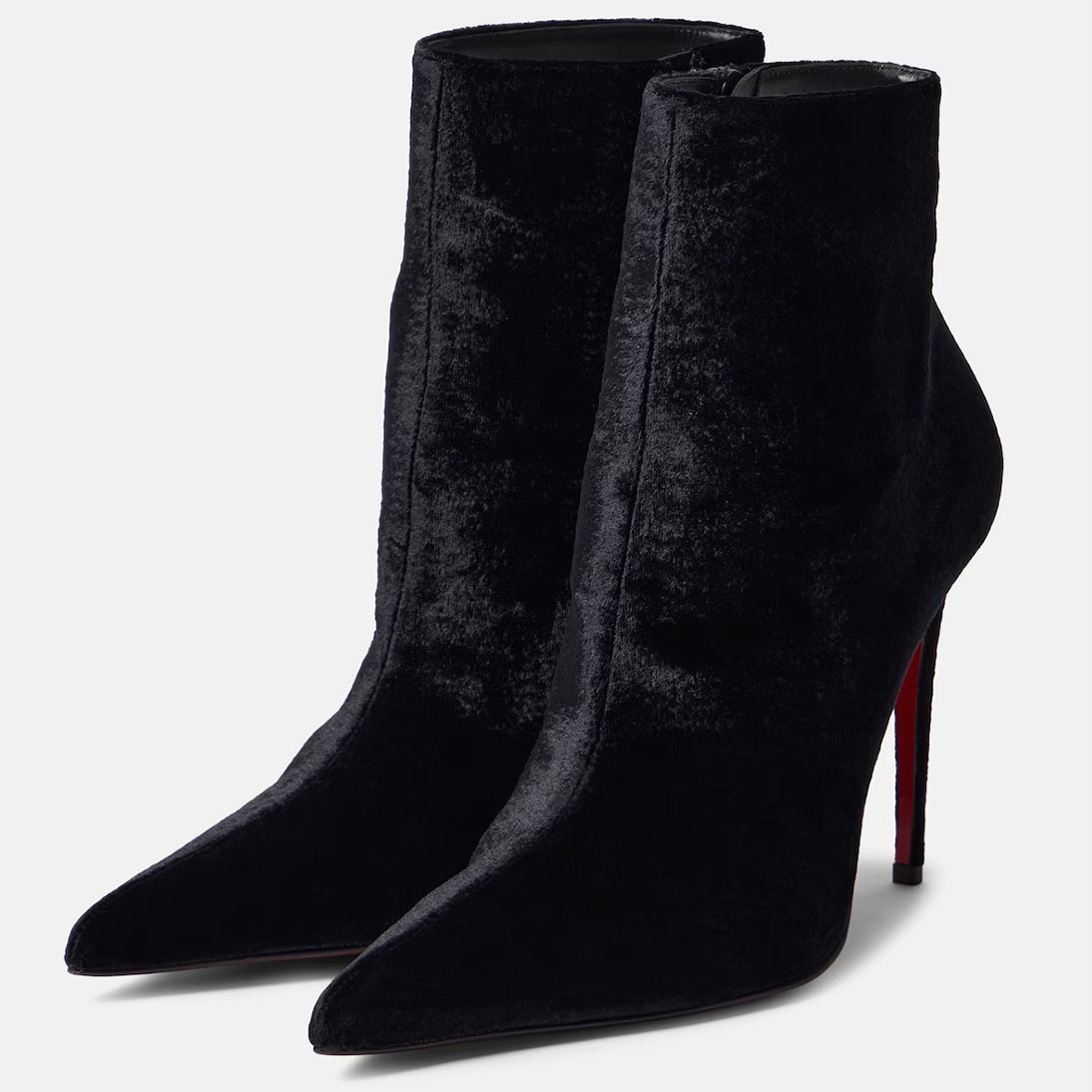 Christian Louboutin Cashmere small pointy toe thin heel black and naked boots