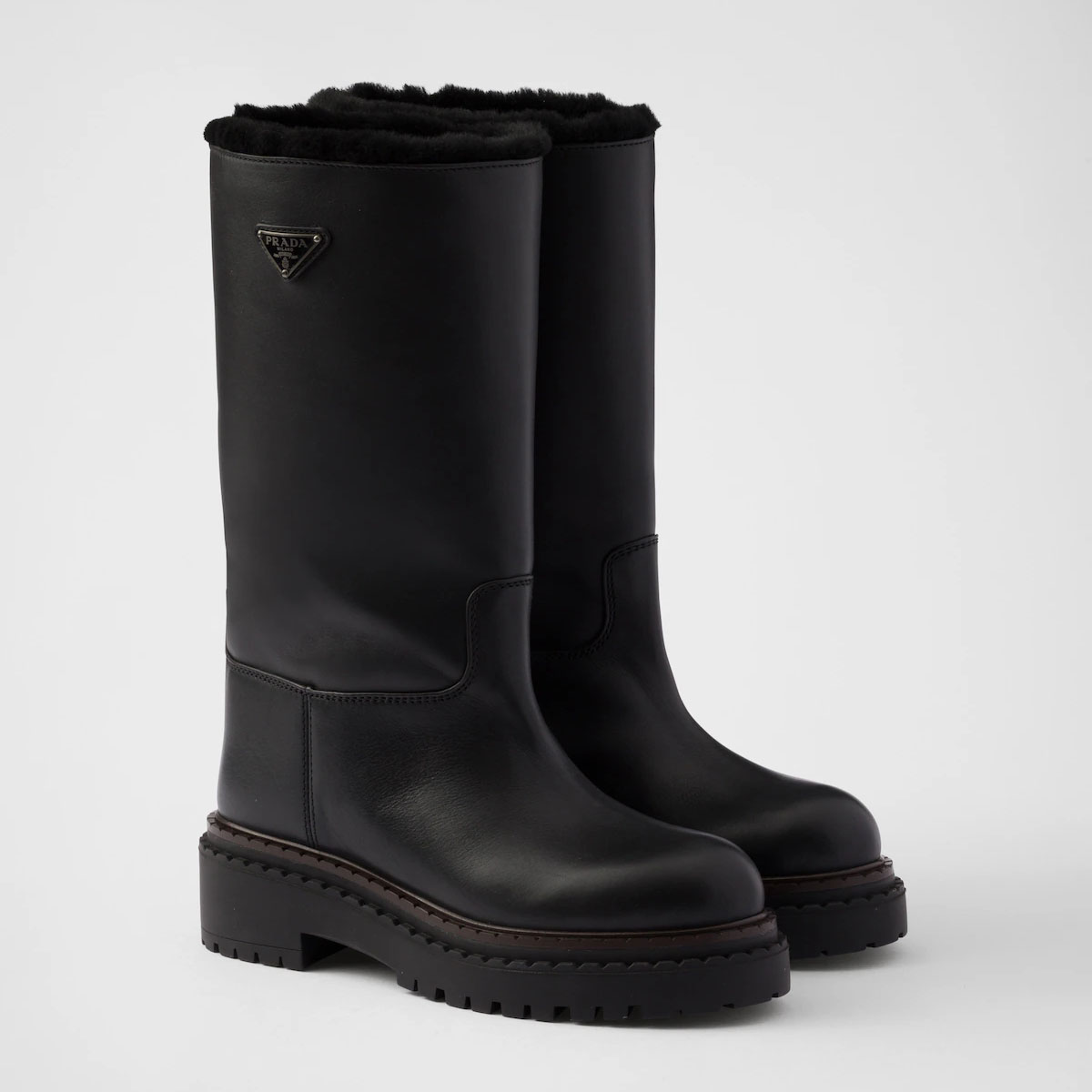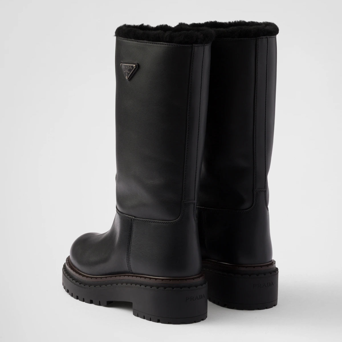 PRADA Black leather and sheepskin boots