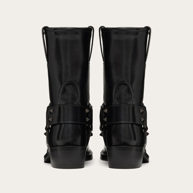 VALENTINO ROCKSTUD Calf leather Motorcycle ankle boots (heel height 4cm)