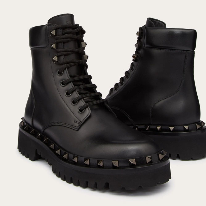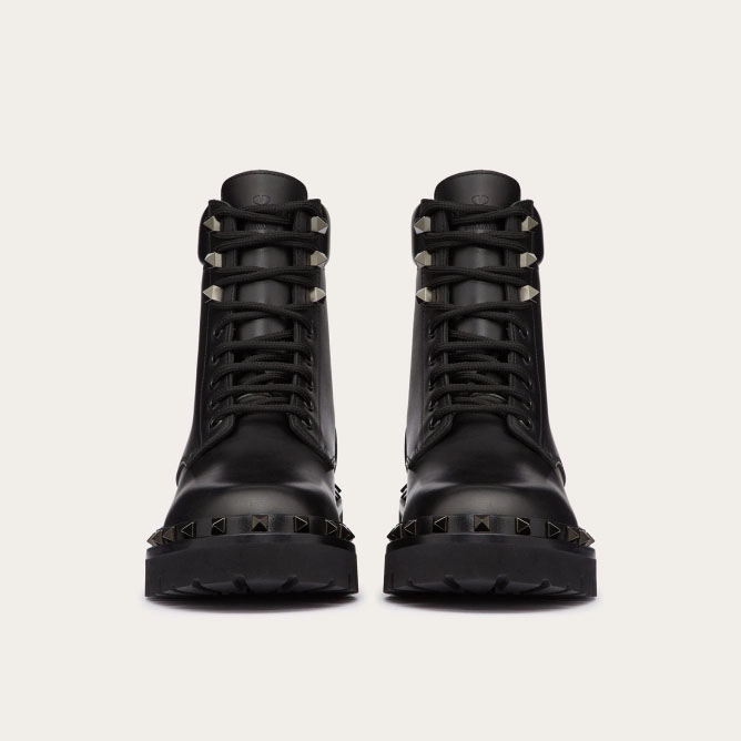VALENTINO ROCKSTUD Military style studded ankle boots of the same color (heel height 5cm)