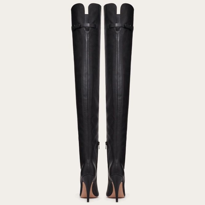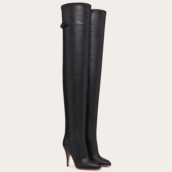 VALENTINO SIGNATURE Knee-high bovine leather boots (10.5 cm high heel)