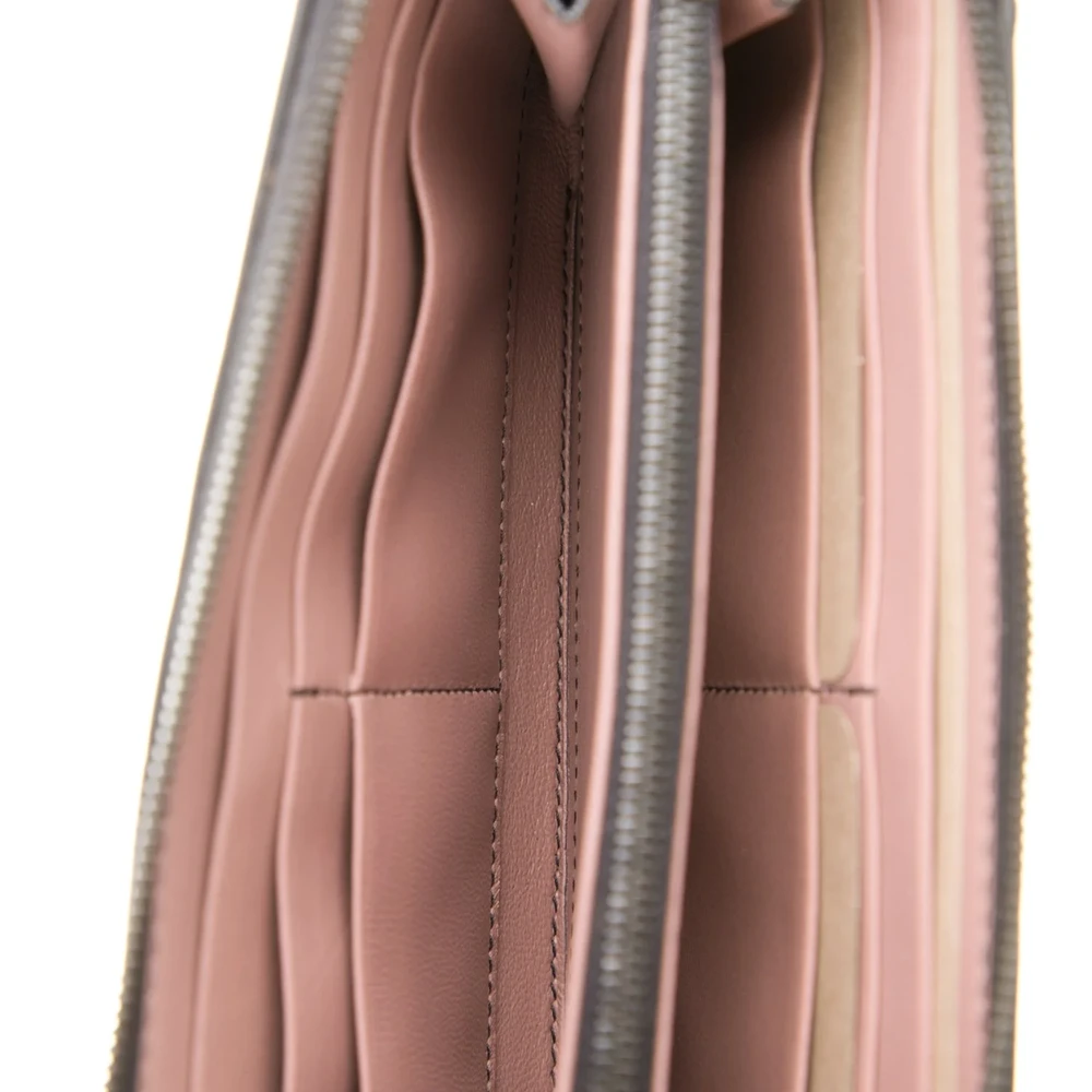 This Bottega Veneta Large Continental Wallet showcases the brand’s iconic craftsmanship. Made from black calfskin leather, it features a smooth and luxurious texture. The silver hardware adds a contemporary touch, elevating its minimalist design. Spacious and functional, it’s perfect for organizing essentials. This wallet embodies refined sophistication and timeless style.