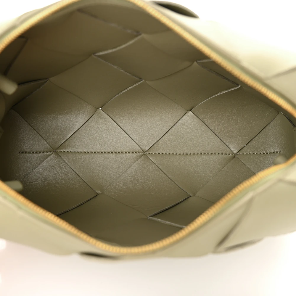 - Bottega Veneta Maxi Intreccio Small Cassette Camera Bag Travertine Lambskin Leather