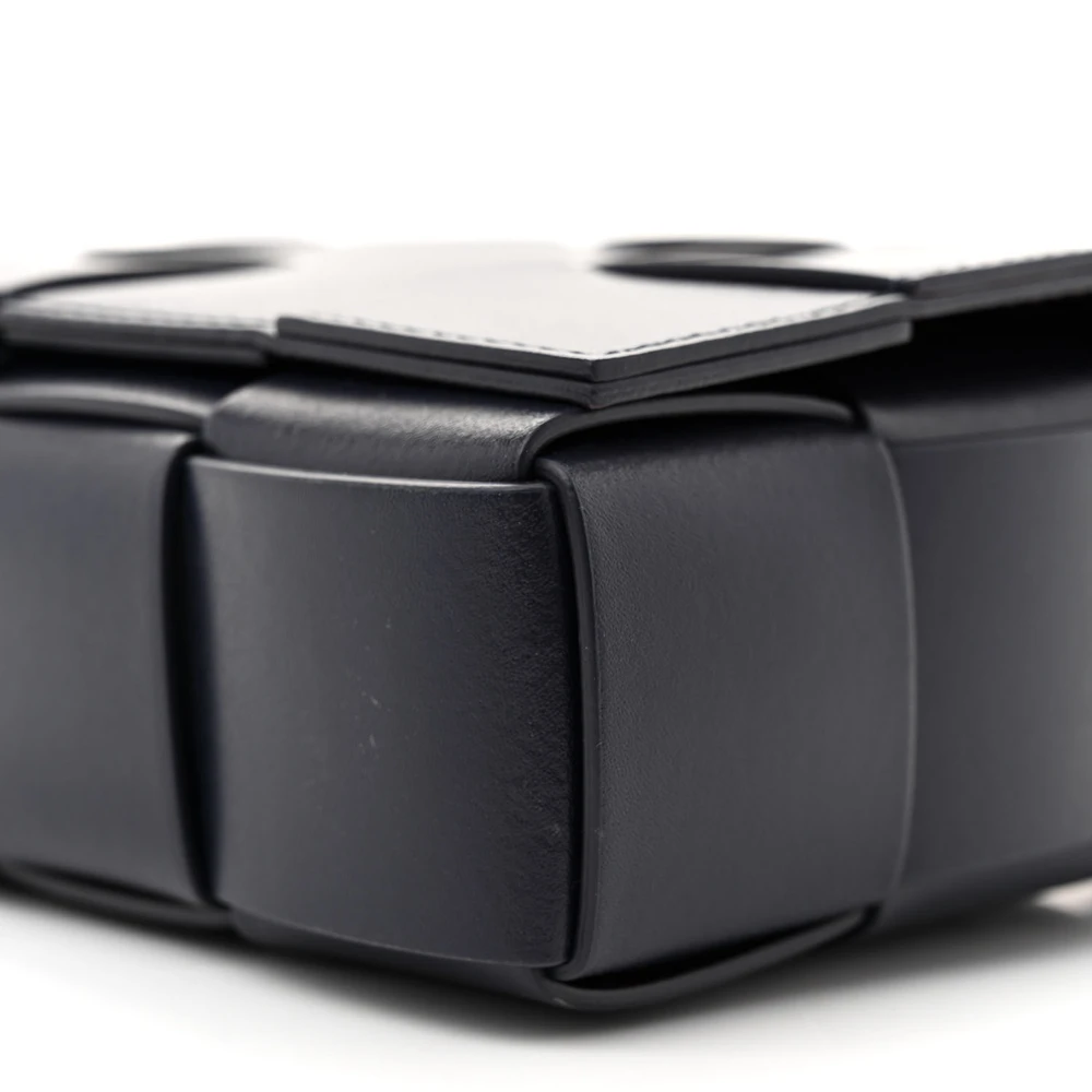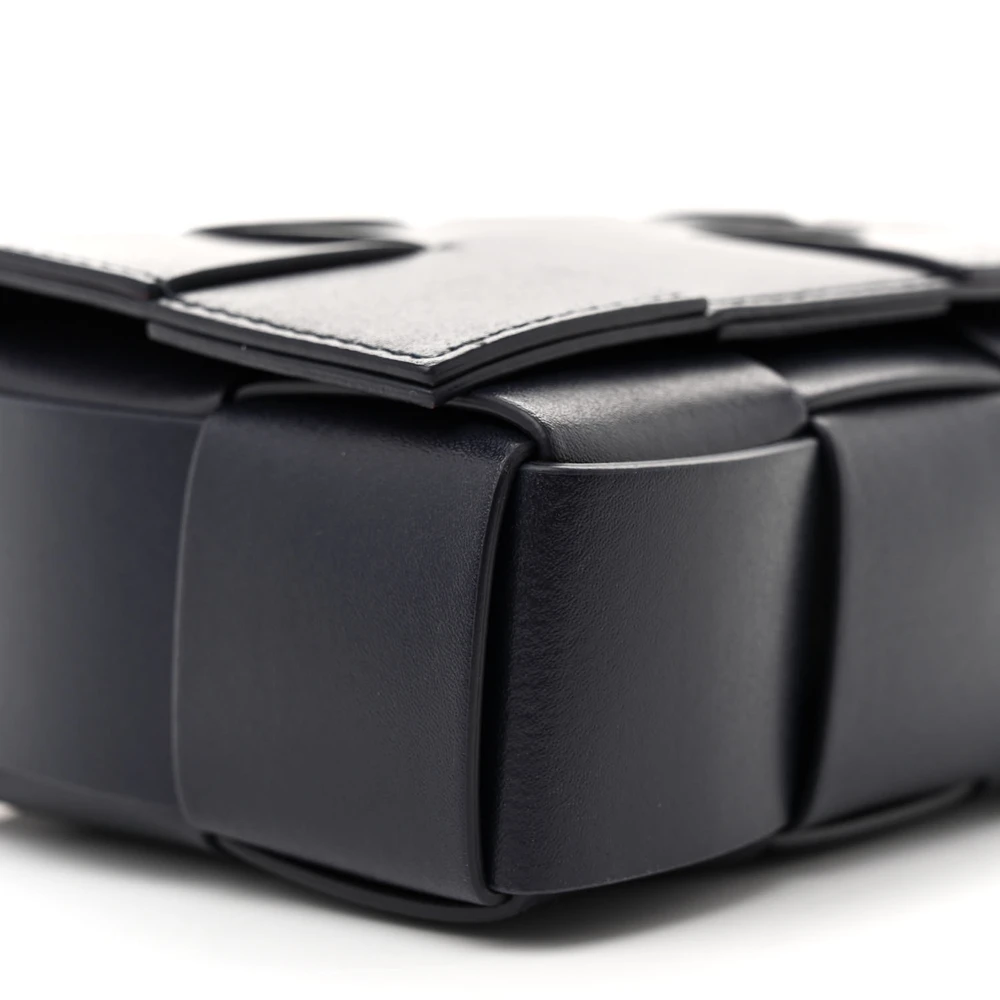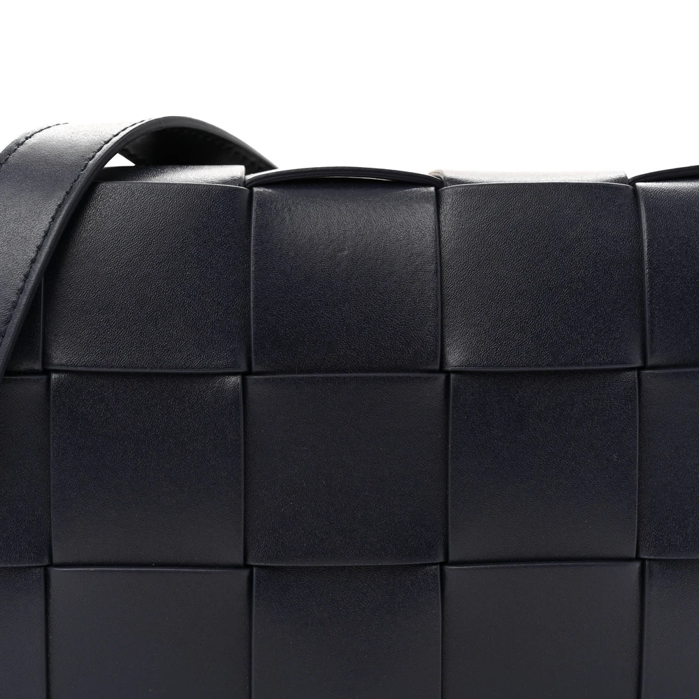 Bottega Veneta Maxi Intreccio Small Cassette Crossbody Bag Navy Blue Lambskin Leather