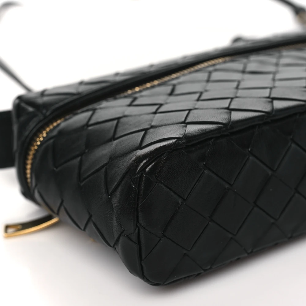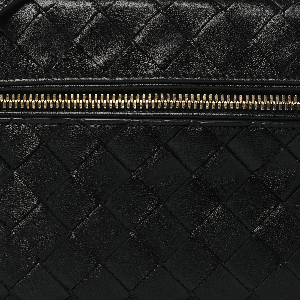 Bottega Veneta Medium Intrecciato Bang Bang Vanity Case Black Calfskin Leather Gold Hardware