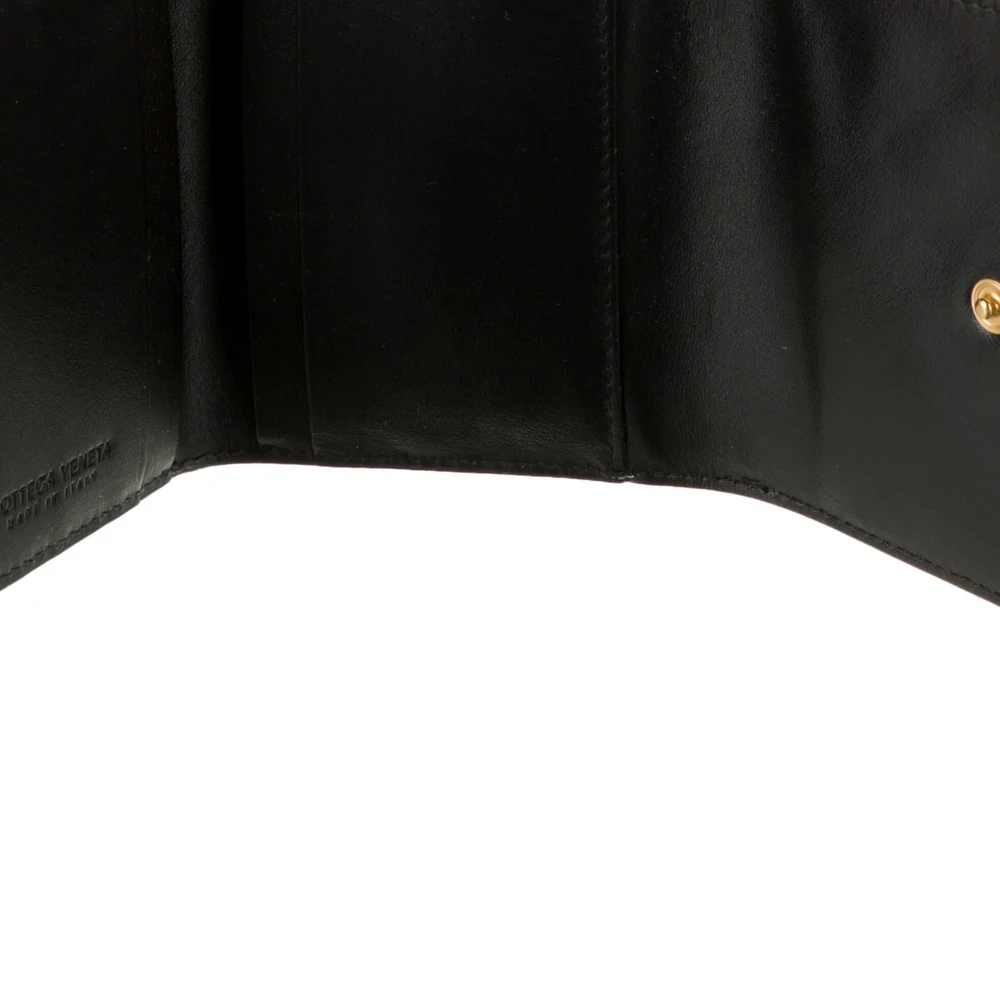 - Bottega Veneta Small Wallet Black Intrecciato Weave Leather