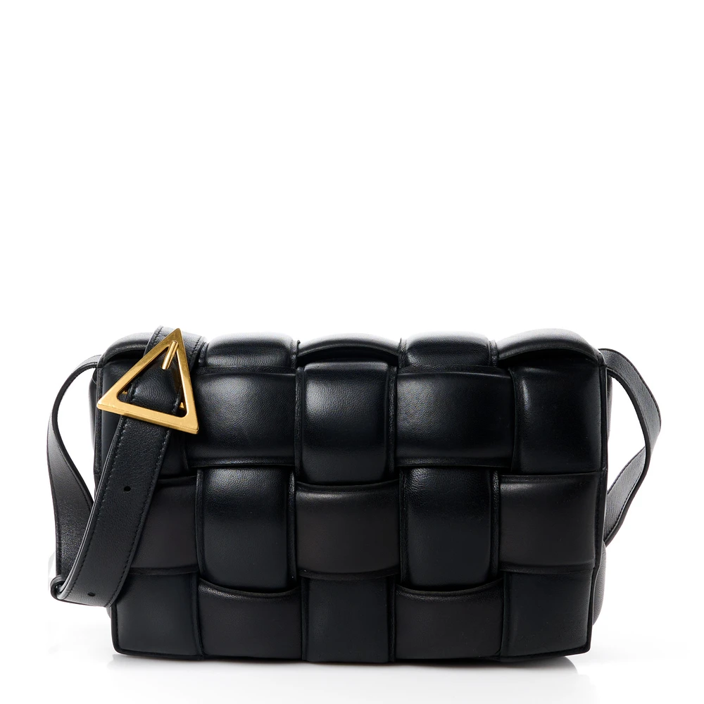 Bottega Veneta Maxi Intreccio Padded Cassette Crossbody Bag Black Nappa Leather Gold Hardware