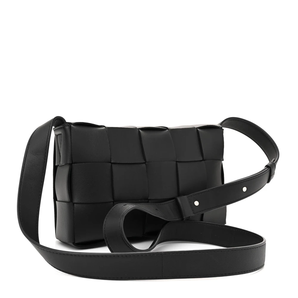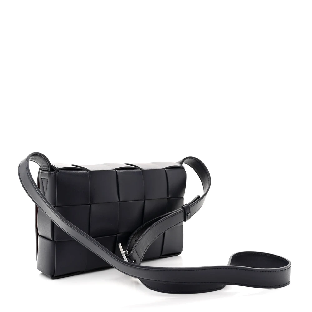Bottega Veneta Maxi Intrecciato Cassette Crossbody Bag Black Lambskin Leather
