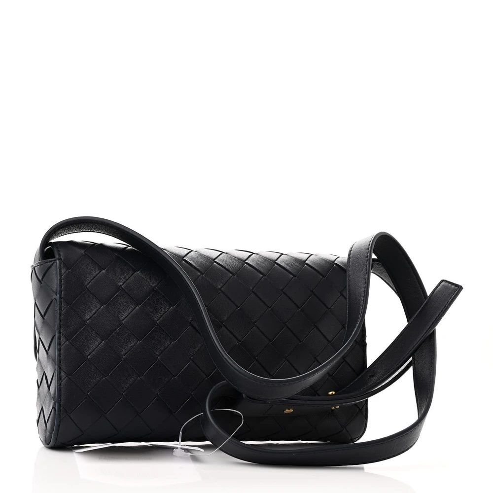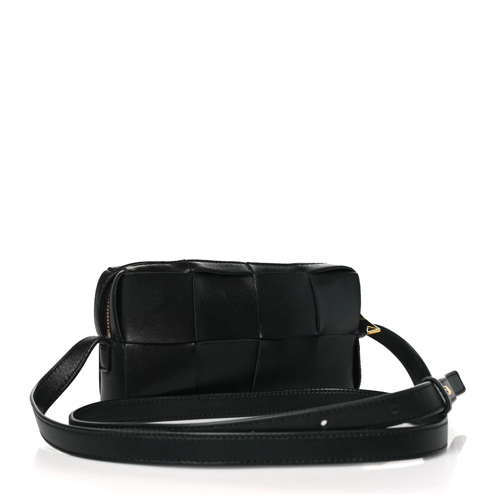 Bottega Veneta Mini Intreccio Cassette Phone Pouch Crossbody Bag Black Lambskin Leather