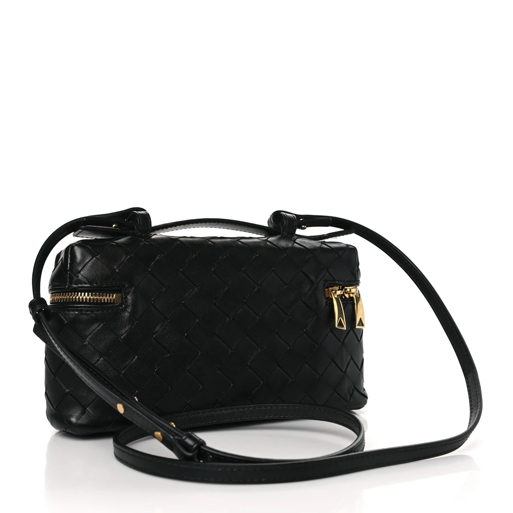 Bottega Veneta Medium Intrecciato Bang Bang Vanity Case Black Calfskin Leather Gold Hardware