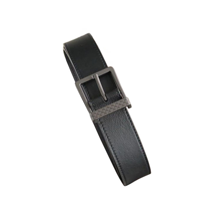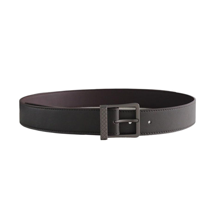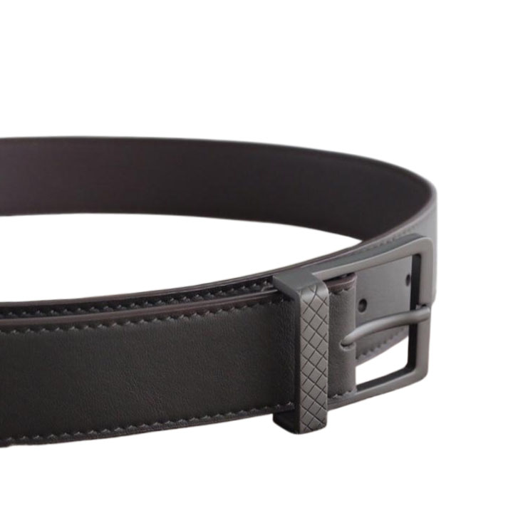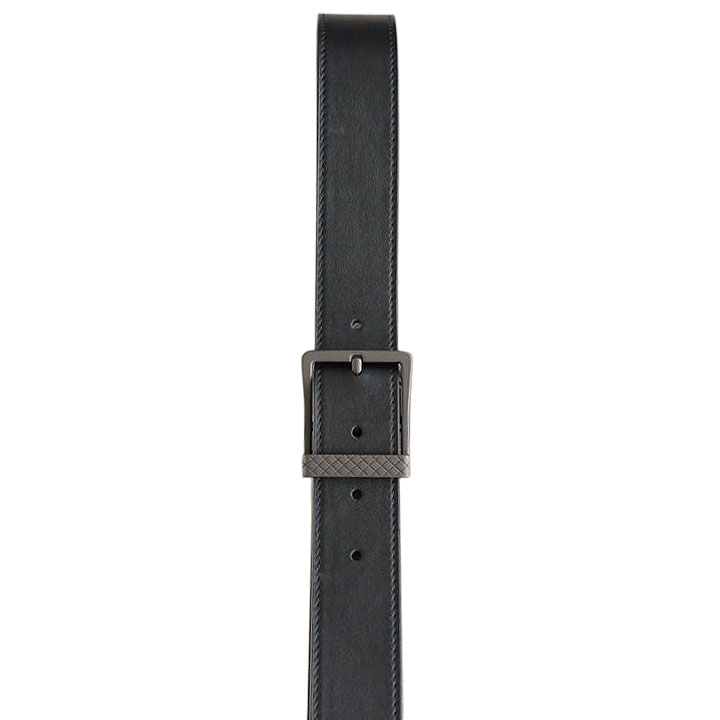 • Bottega Veneta Men’s Square Buckle Belt In Black/Coffee/Blue Calfskin With Matte Gun Black Hardware 35mm