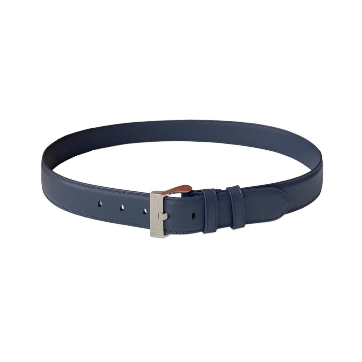 Bottega Veneta Men’s Square Buckle Belt In Peru/Blue/Black Smooth Calfskin With Silver/Gold Hardware 35mm