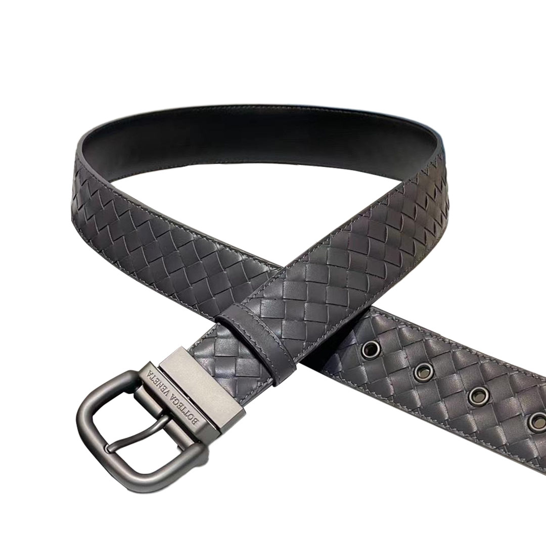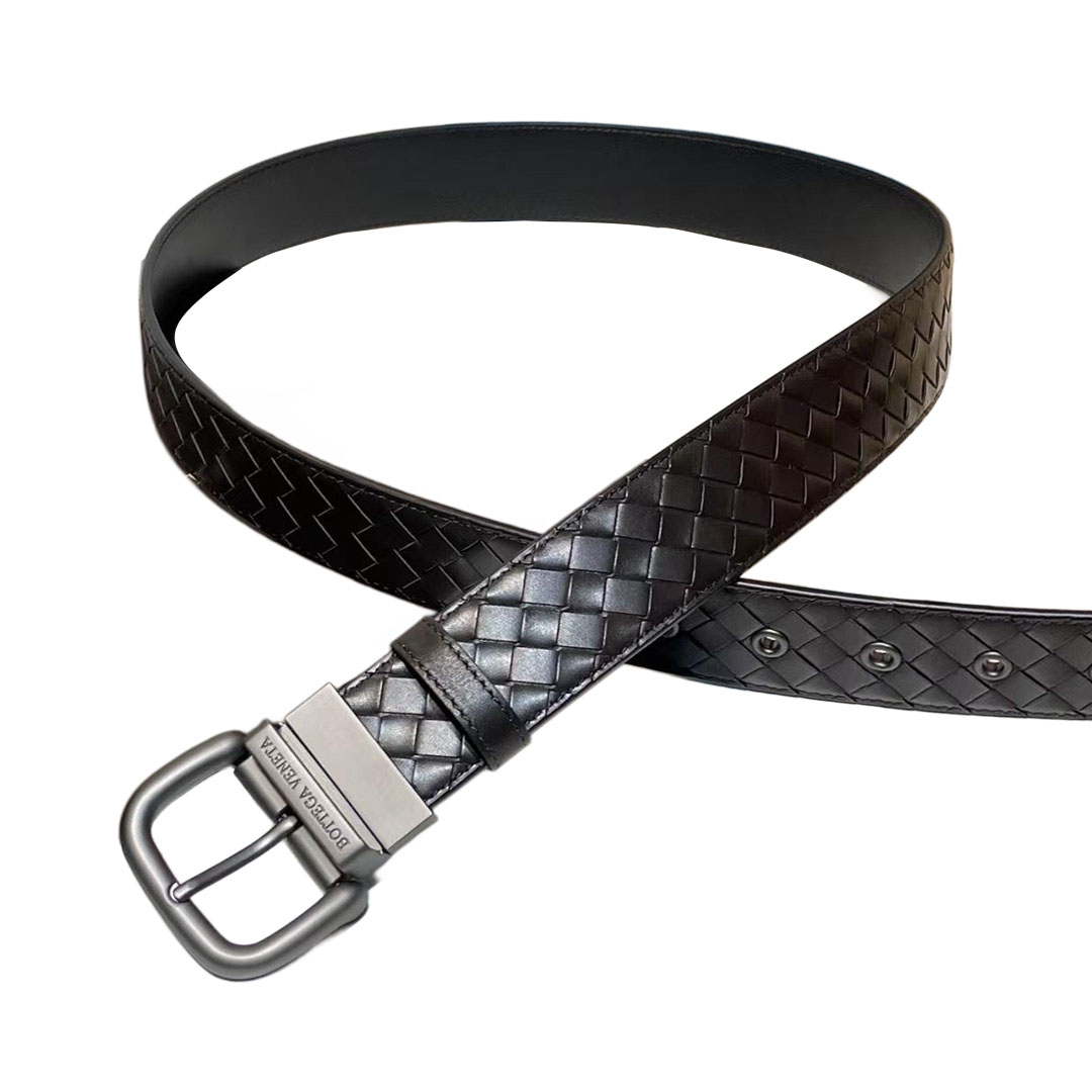 • Bottega Veneta Men’s Square Buckle Intrecciato Belt In Black/Coffee/Blue/Dark Grey Calfskin With Gun Black Hardware 40mm