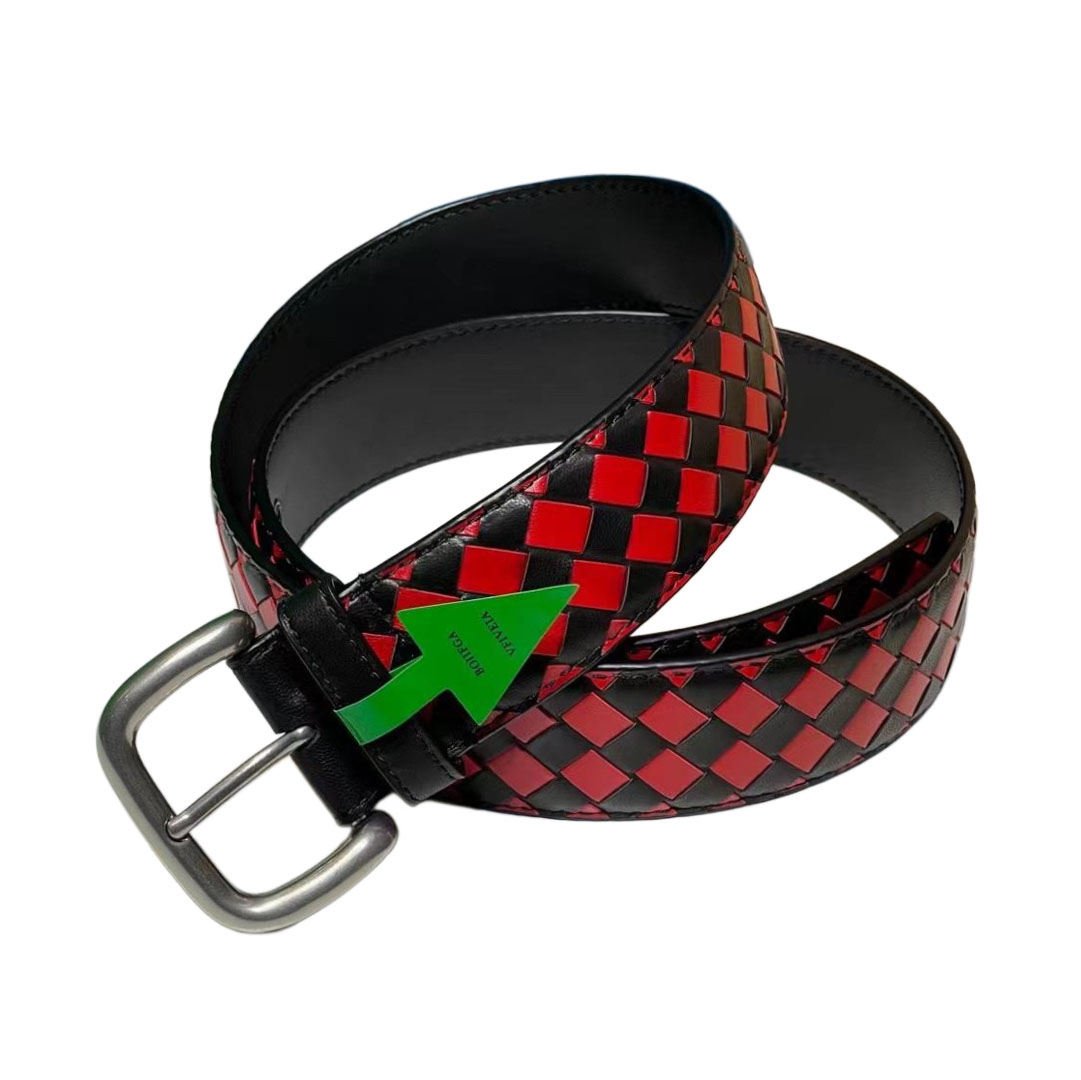 • Bottega Veneta Men’s Square Buckle Intrecciato Belt In Multicolor Calfskin With Silver/Matte Gun Black Hardware 35mm