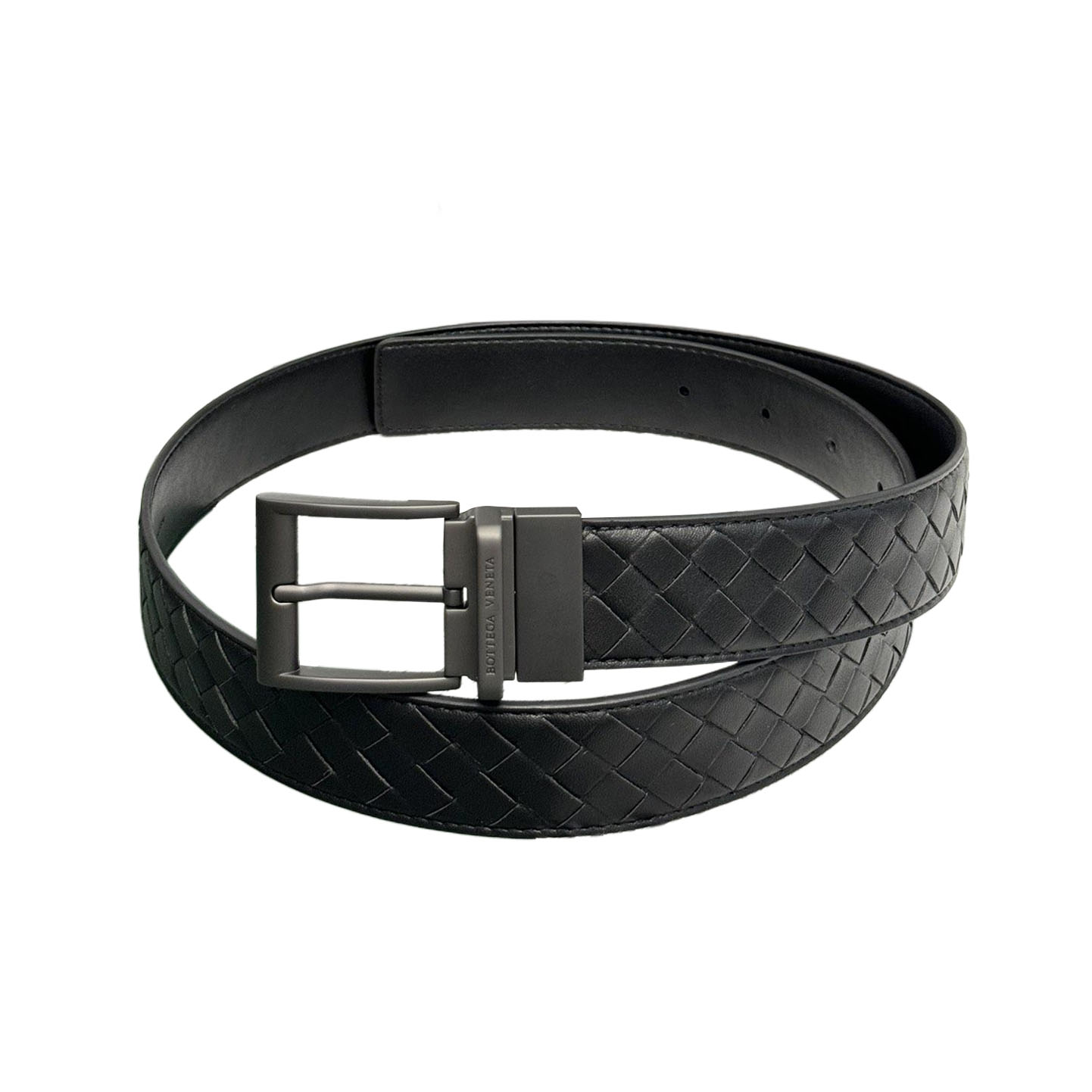 Bottega Veneta Men’s Watch Buckle Intrecciato Belt In Black/Grey/Blue/Coffee Calfskin With Silver/Gun Black Hardware 35mm