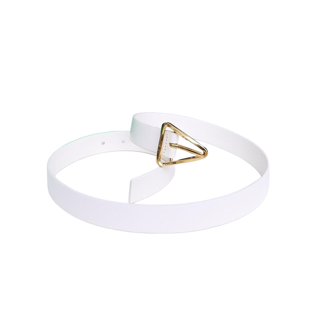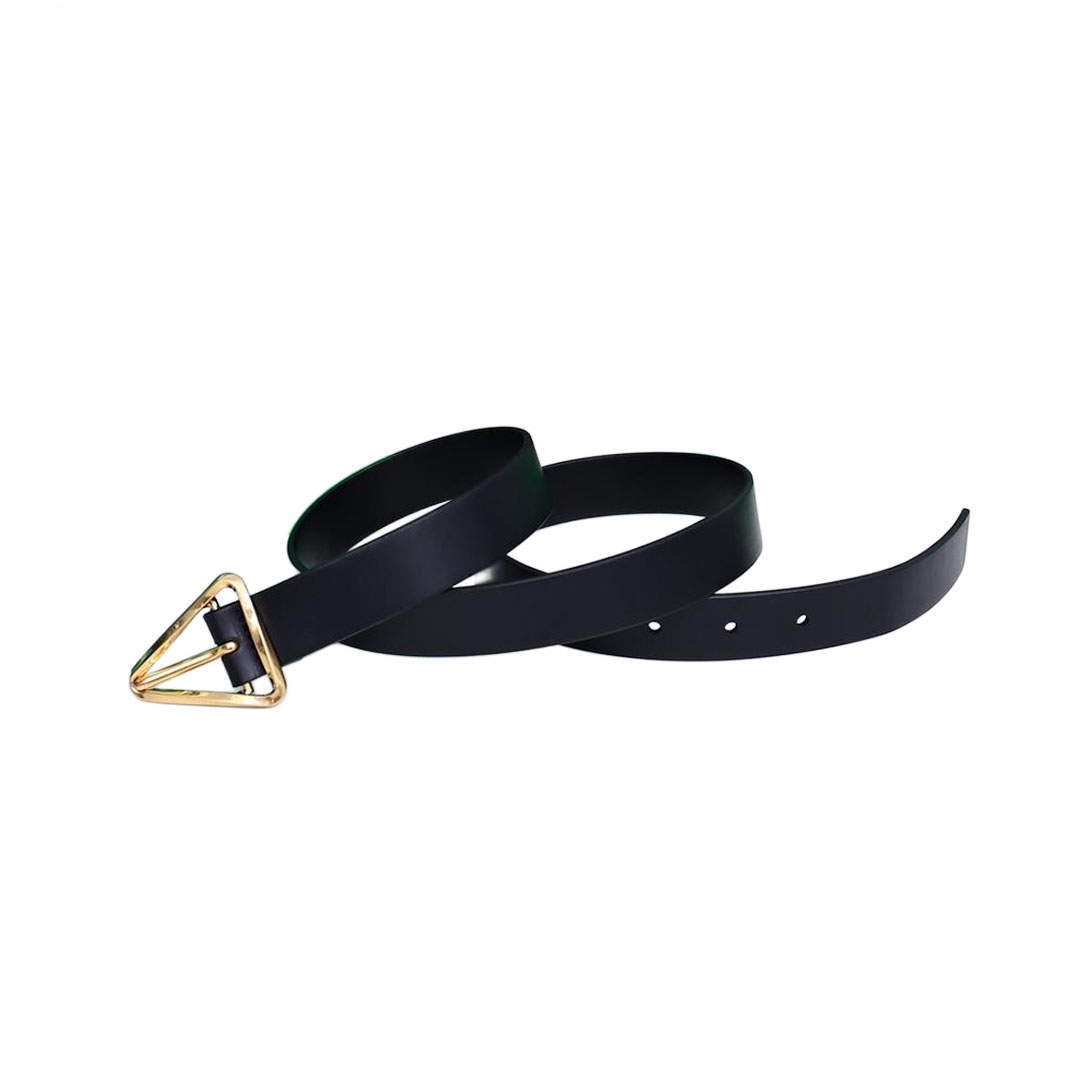 Bottega Veneta Women’s Triangle Buckle In Black/White/Beige Calfskin With Gold/Silver Hardware 25mm