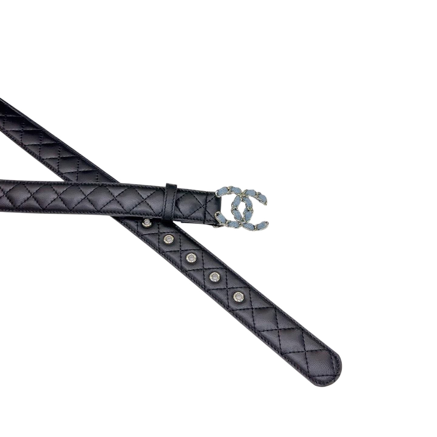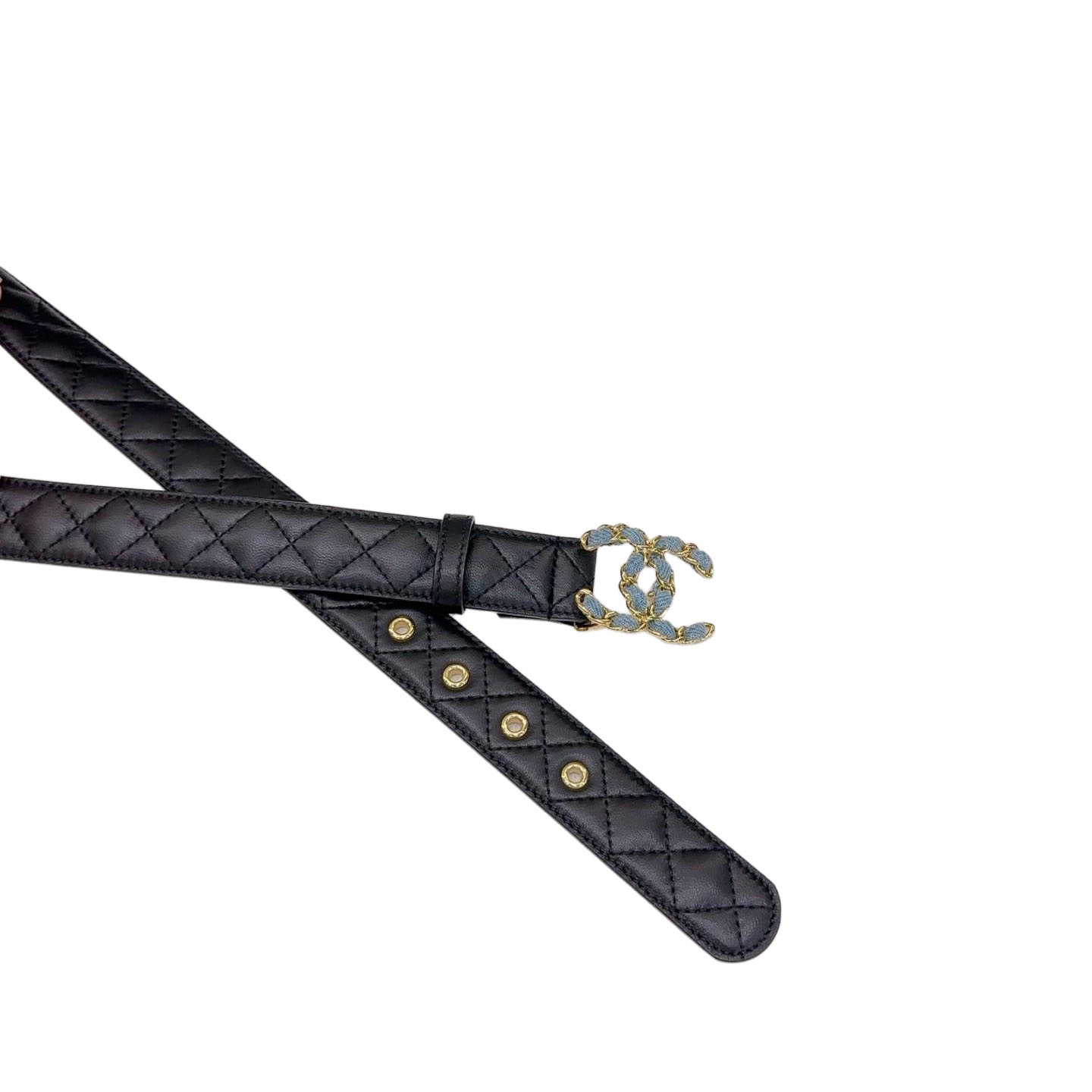 Chanel Women’s CC Belt In Black Lambskin With Gold/Silver Hardware 30mm