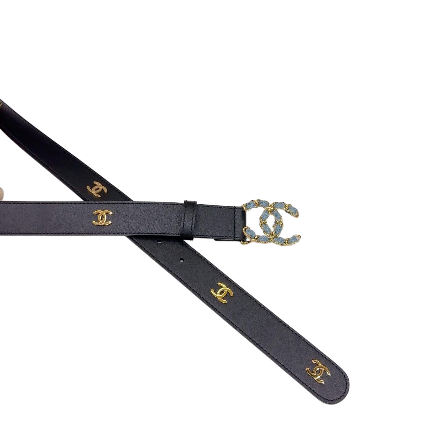 Chanel Women’s CC Belt In Black/White Calfskin With Gold Hardware 30mm