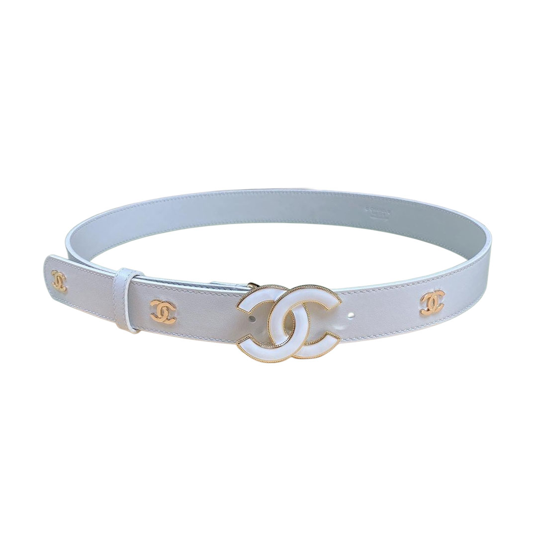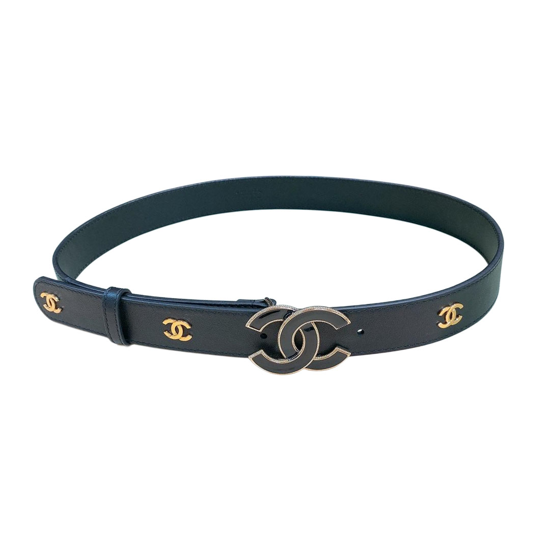 Chanel Women’s CC Belt In Black/White Diamond Stitching Calfskin With Gold Hardware 30mm