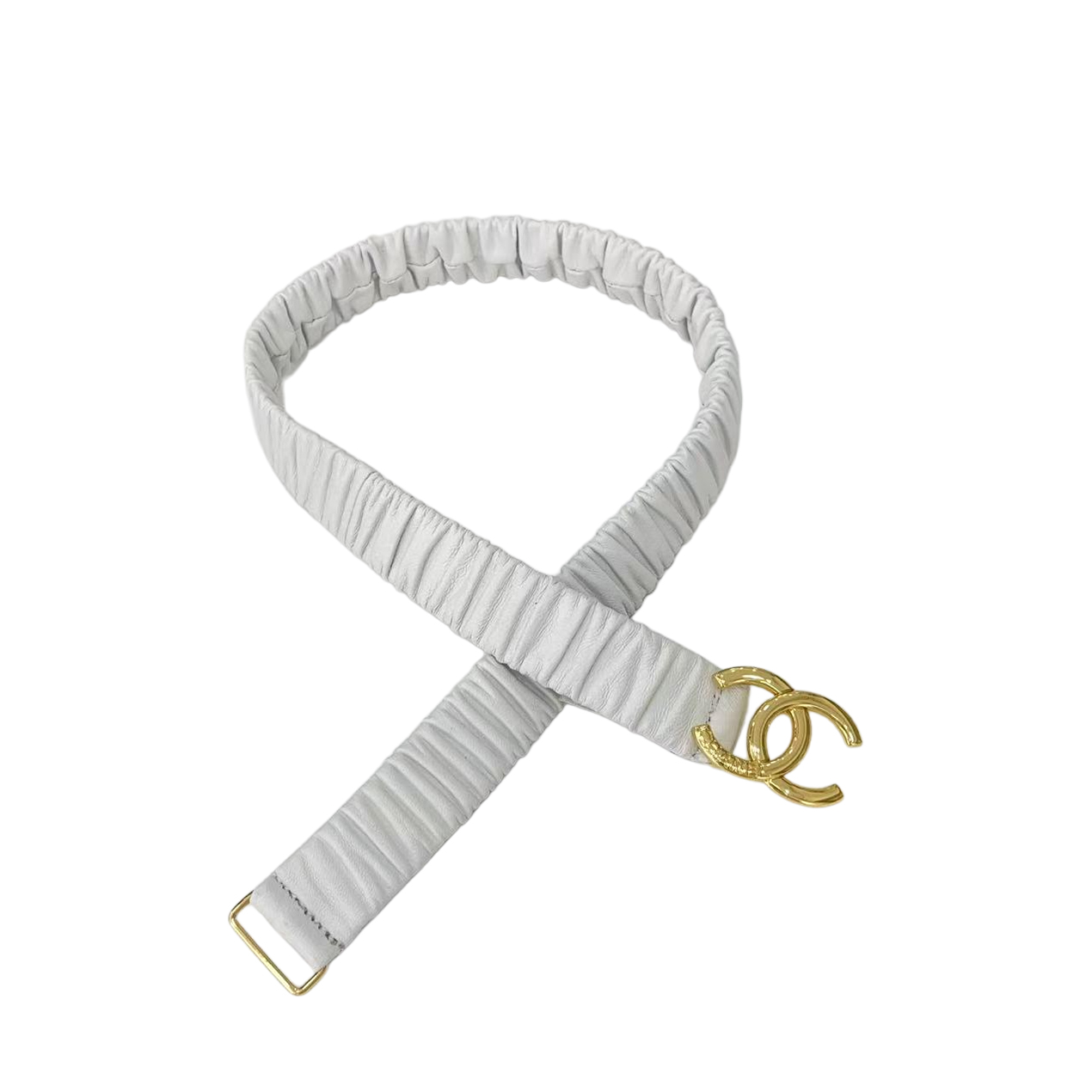 Chanel Women’s CC Elastic Belt In Black/White Lambskin With Silver/Gold Hardware 30mm