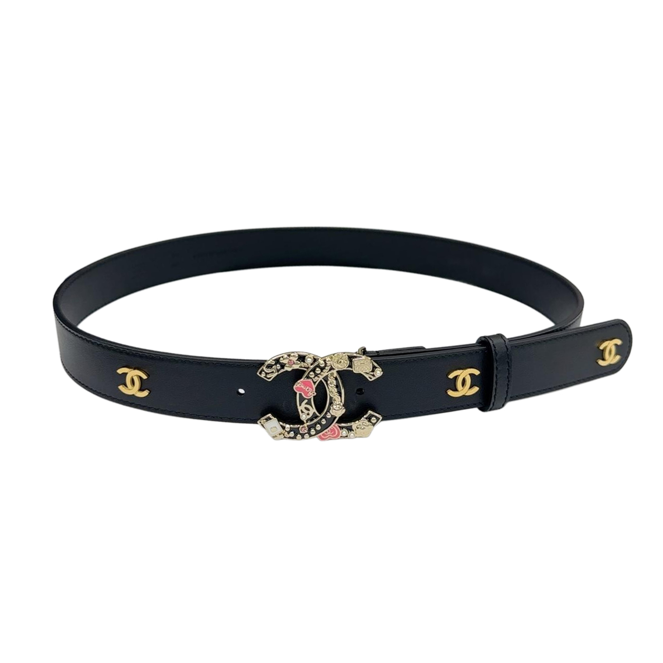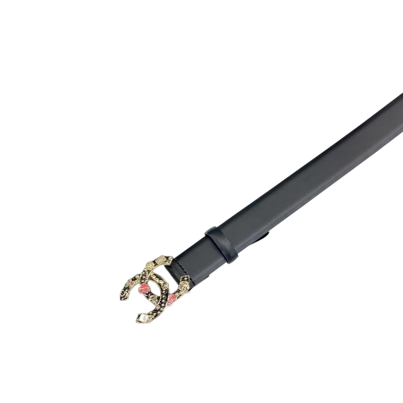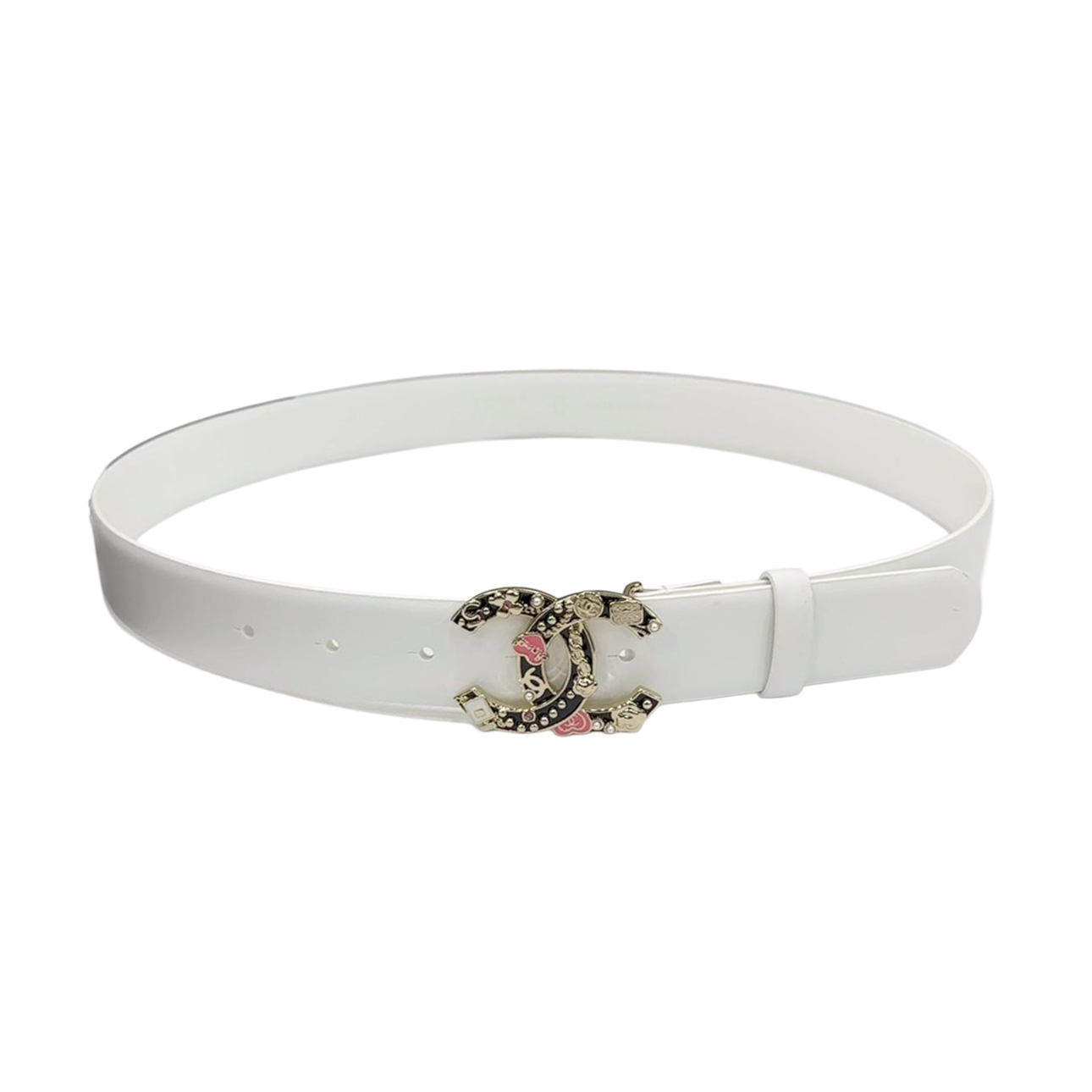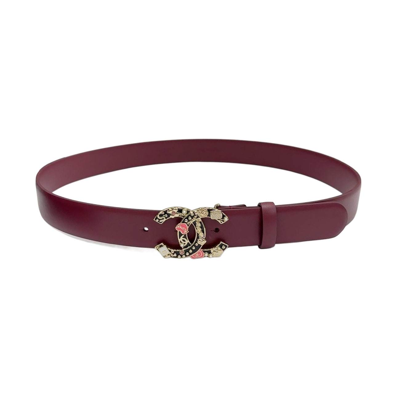 • Chanel Women’s Decorative CC Buckle Belt In White/Black/Red/Burgundy Calfskin With Gold Hardware 30mm