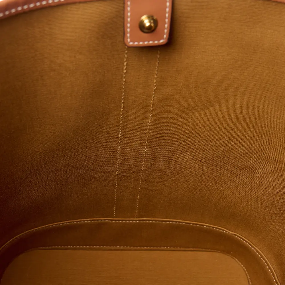 This Celine Medium Bucket Bag in Tan combines Triomphe canvas and calfskin leather with gold hardware. Its spacious design is perfect for everyday essentials. The adjustable strap offers versatile carry options. A chic and practical addition to any collection.