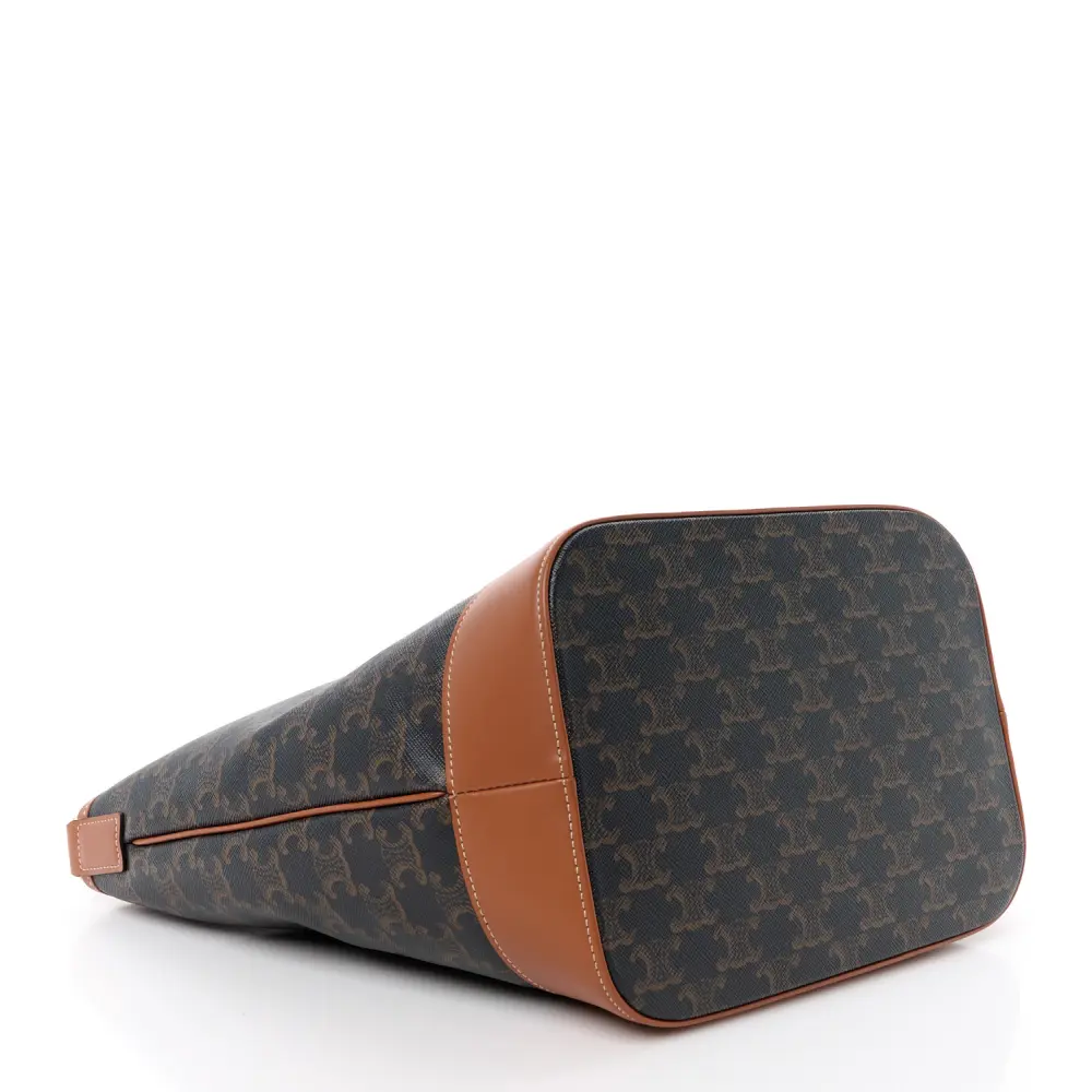 Celine Medium Bucket Bag Tan Triomphe Canvas & Calfskin Leather