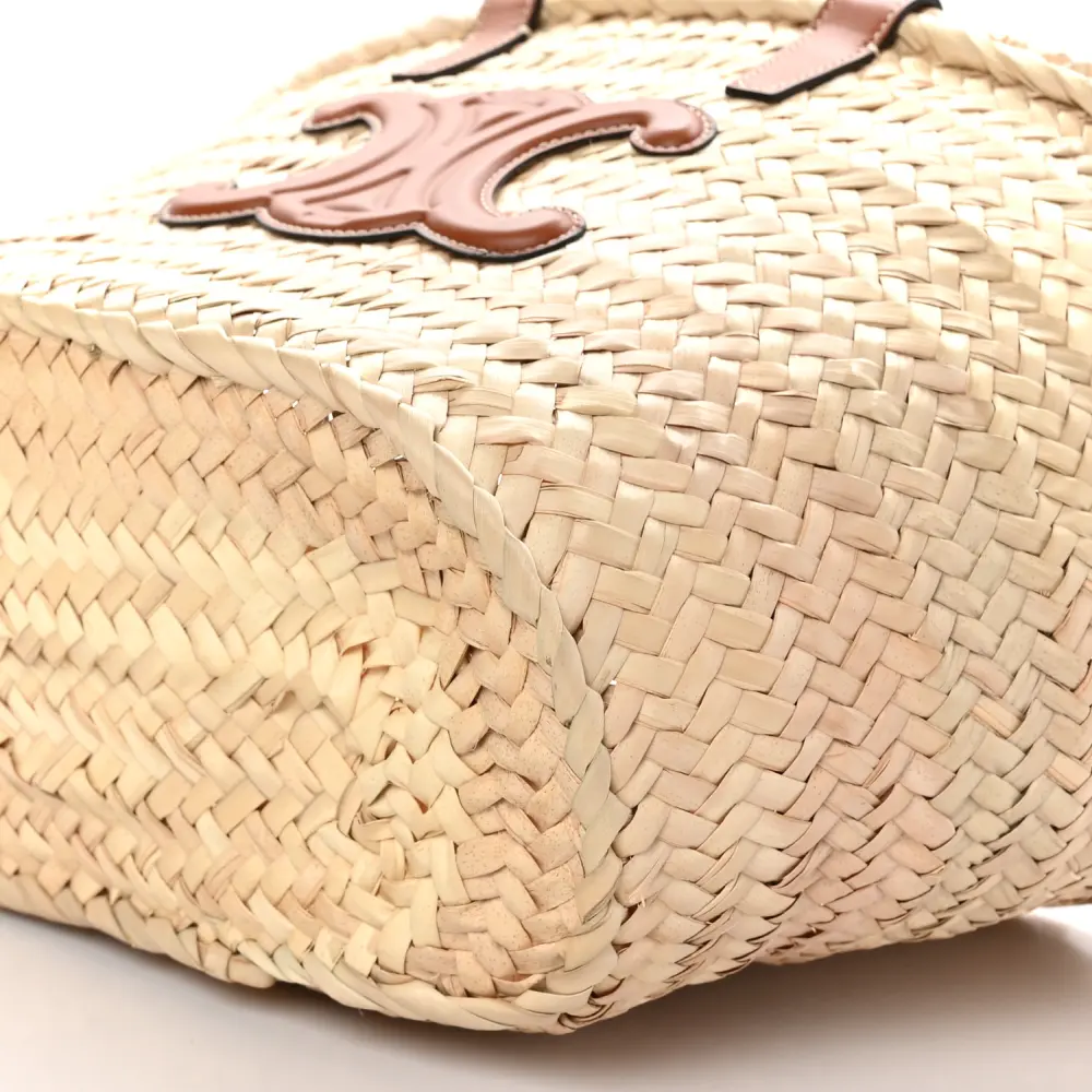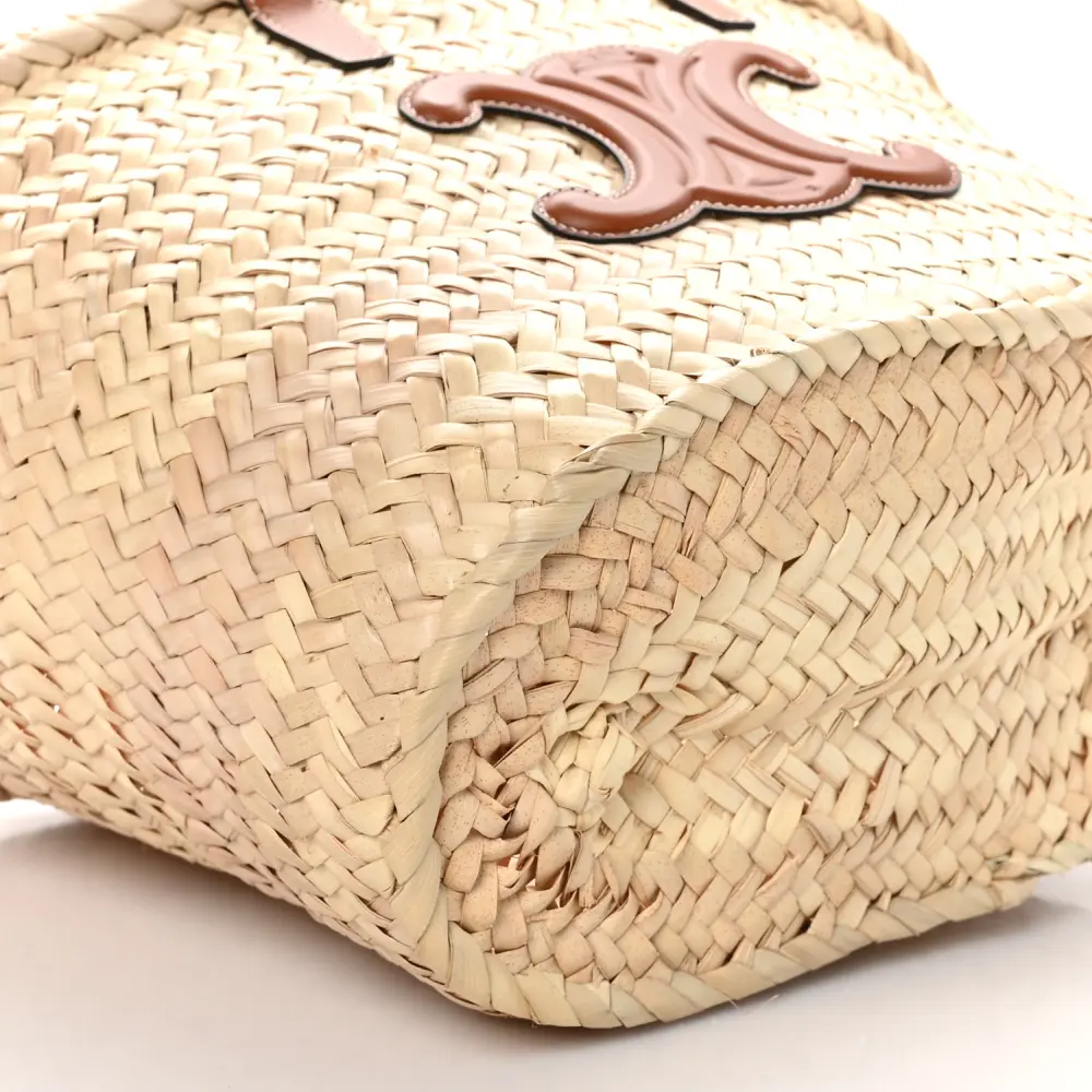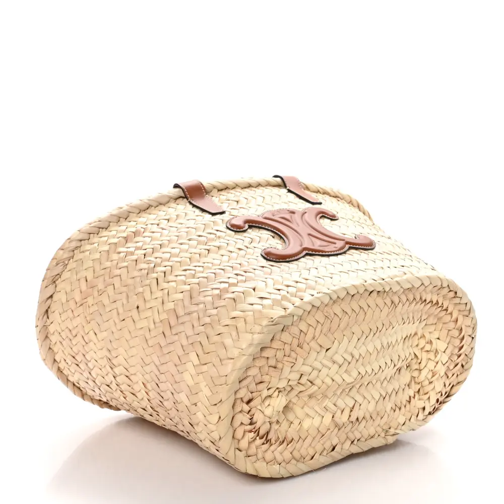 Celine Medium Triomphe Teen Panier Tan Palm Leaf & Calfskin Leather Gold Hardware