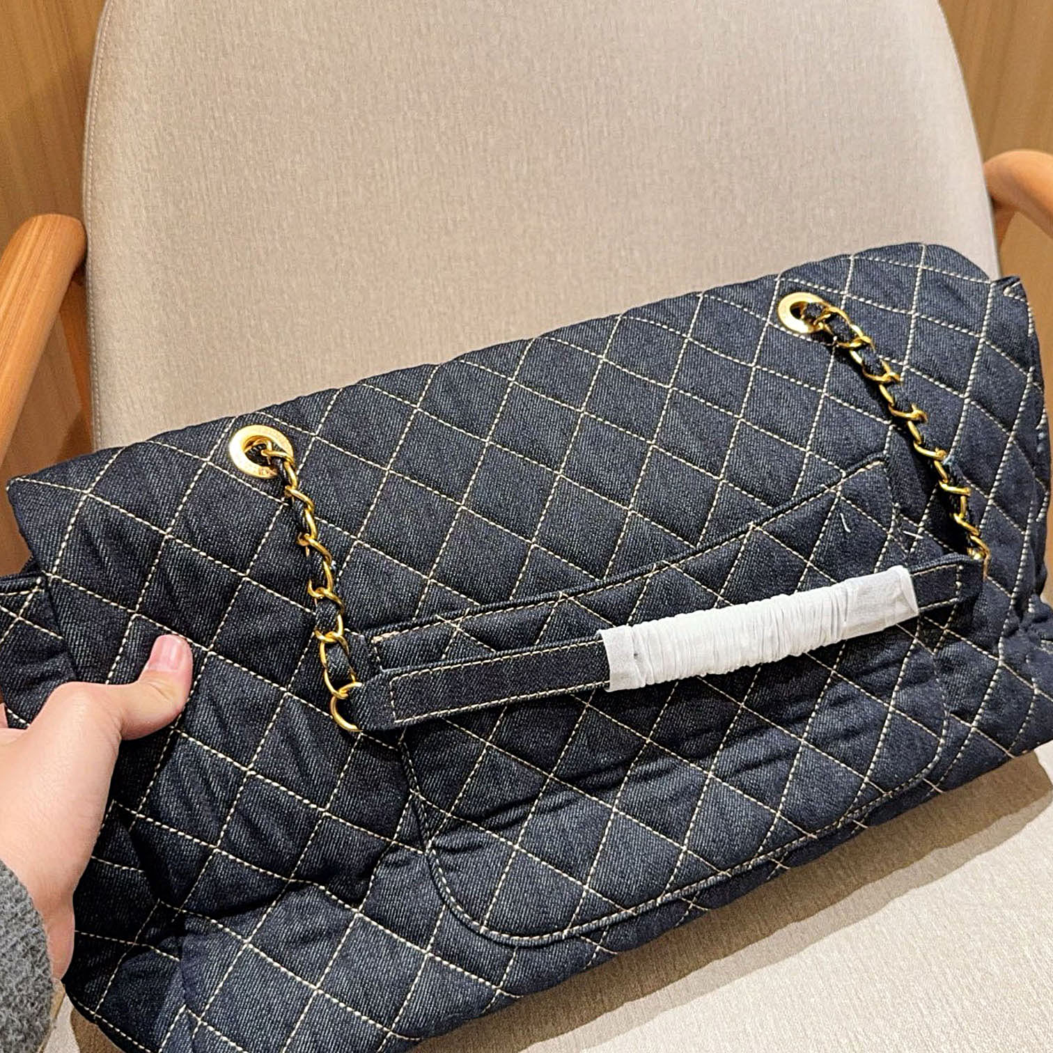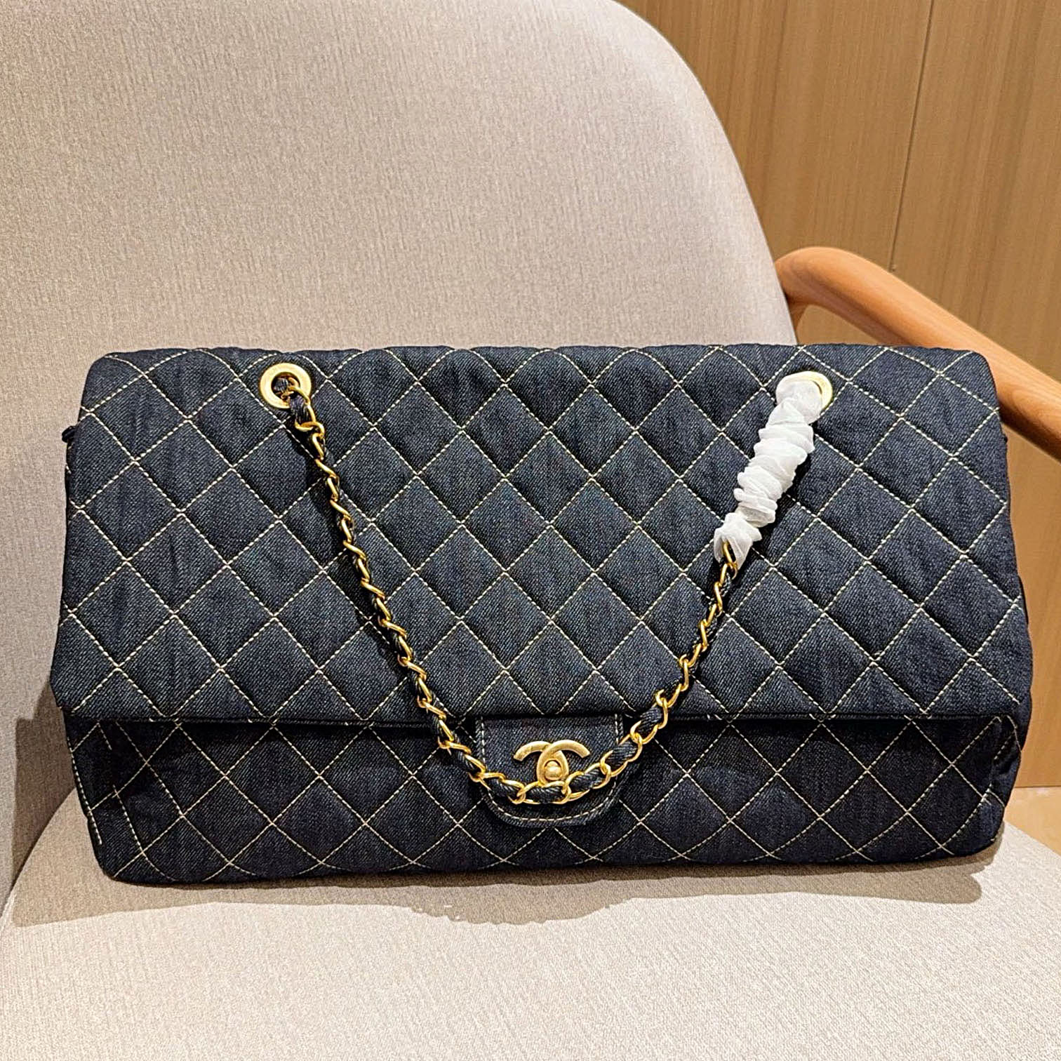 | Material | Quilted Caviar Leather / Denim |