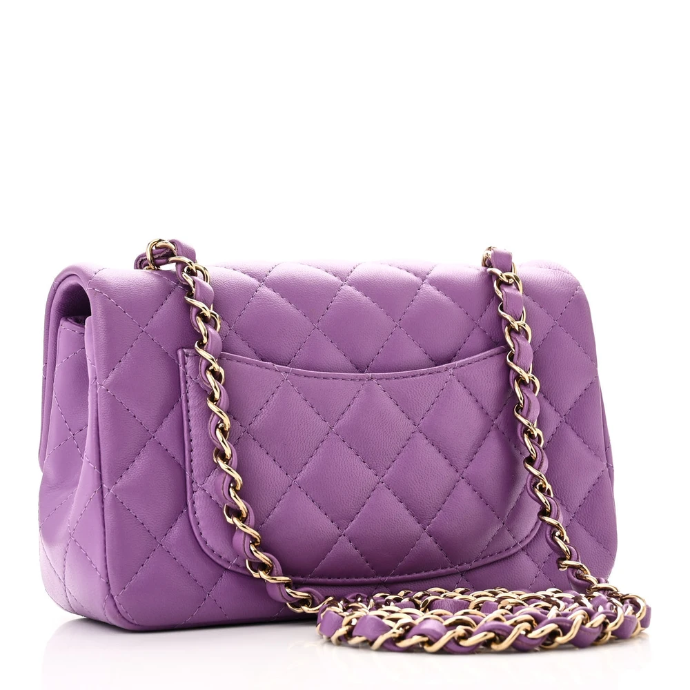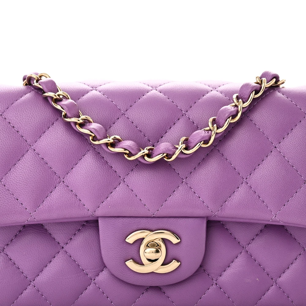 Chanel Flap Mini Rectangular Purple Quilted Lambskin Leather Light Gold Hardware
