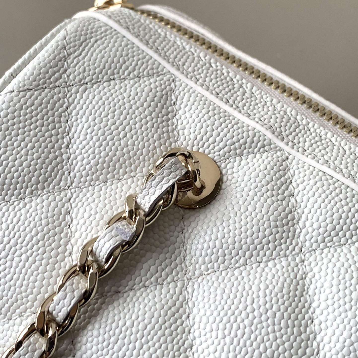 Chanel Quilted Caviar Leather White / Light apricot color Crossbody Bags