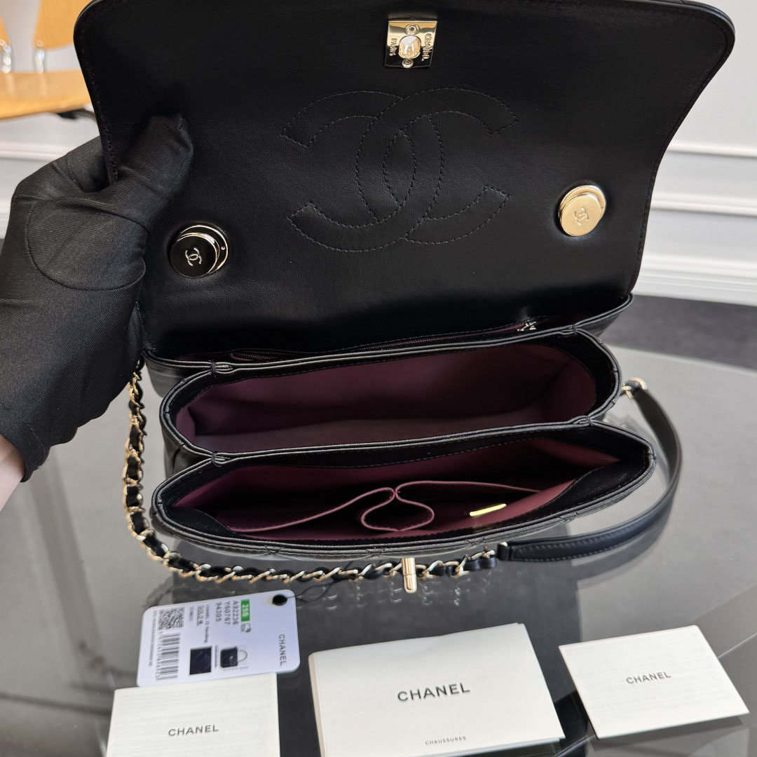 Chanel Sheepskin black gold button handbag crossbody bag