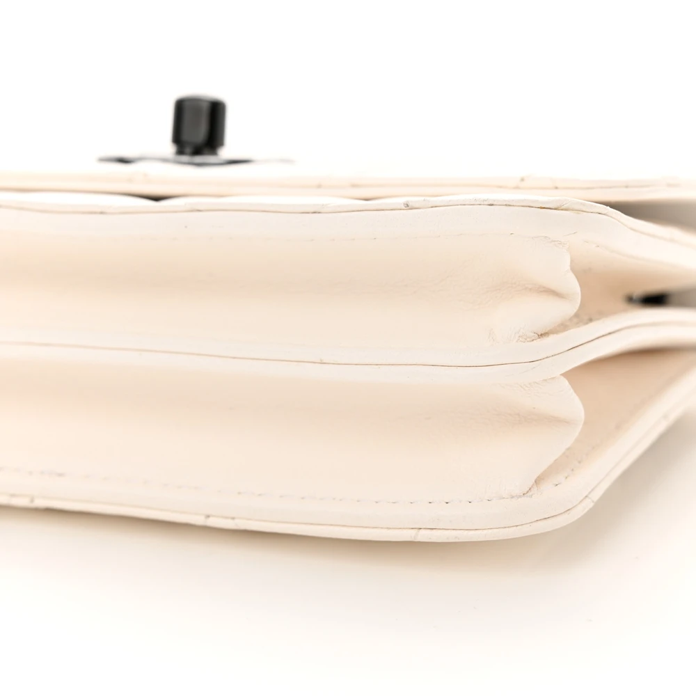 Chanel Trendy CC Wallet On Chain (WOC) Mini White Quilted Lambskin Leather Black Hardware