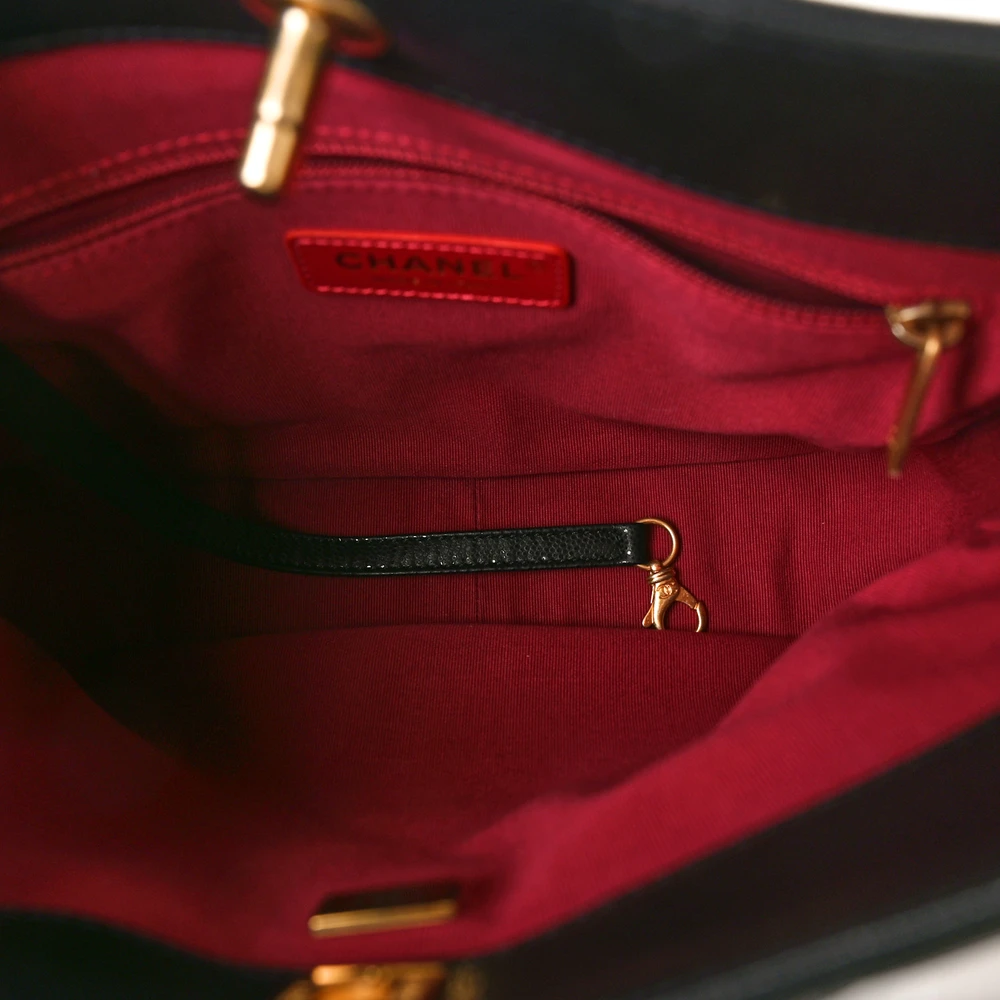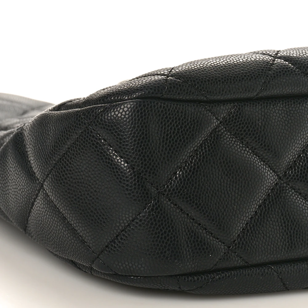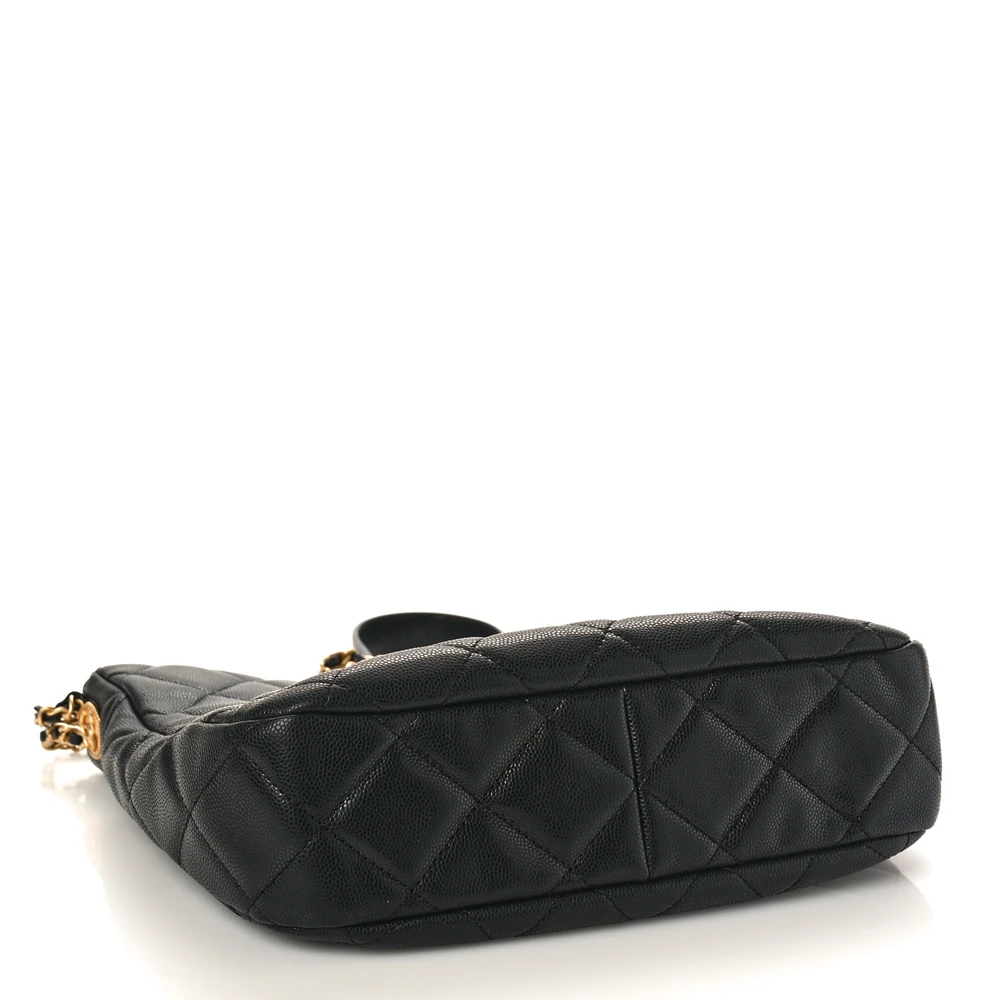 • Chanel Twist Your Buttons Hobo Medium Black Quilted Caviar Leather Aged Gold Hardware