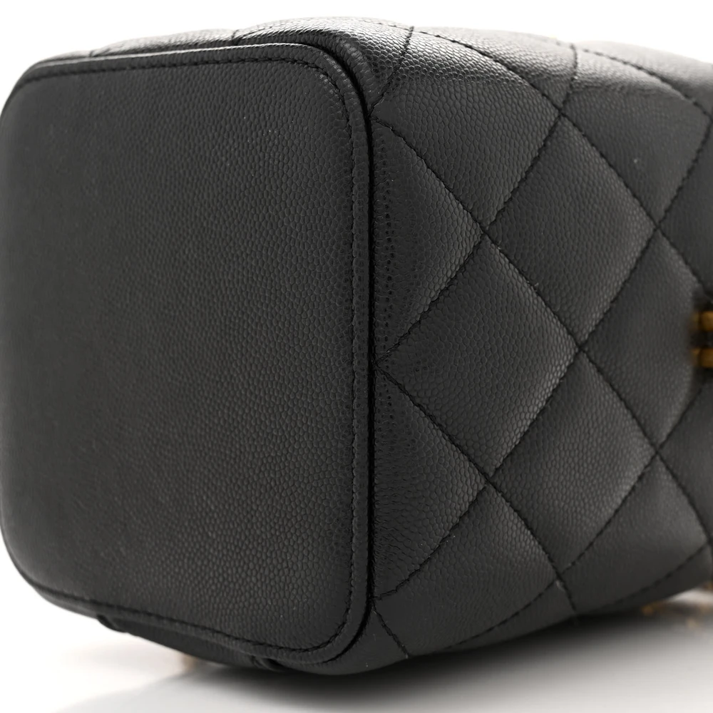 Chanel Vertical Vanity Case With Chain Small Black Quilted Caviar Leather Gold Hardware