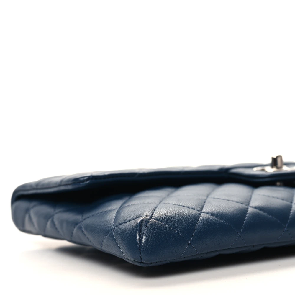 This Chanel Flap Clutch Medium in Navy is crafted from quilted caviar leather with silver hardware. The rich navy tone exudes sophistication and elegance. Spacious enough for essentials, it’s ideal for both day and evening events. The quilted pattern reflects Chanel’s timeless craftsmanship. A versatile and stylish choice for any occasion.