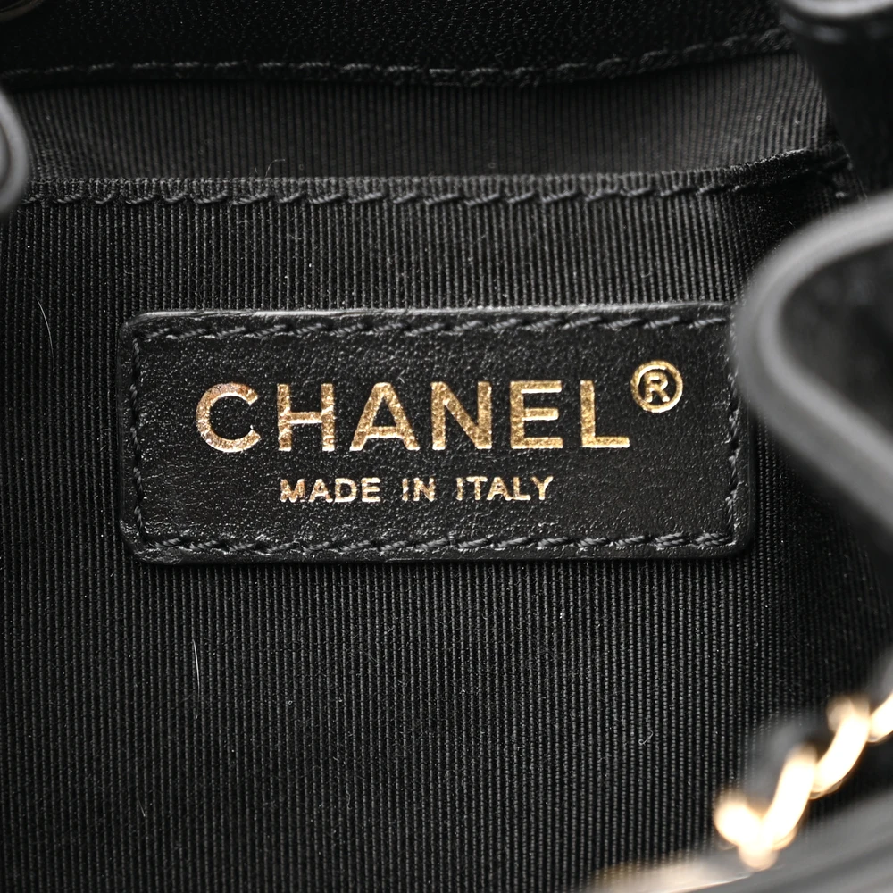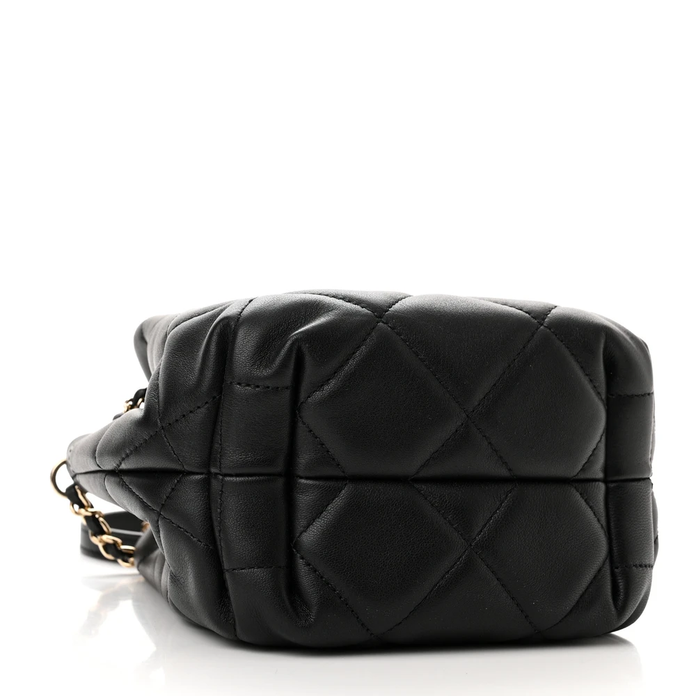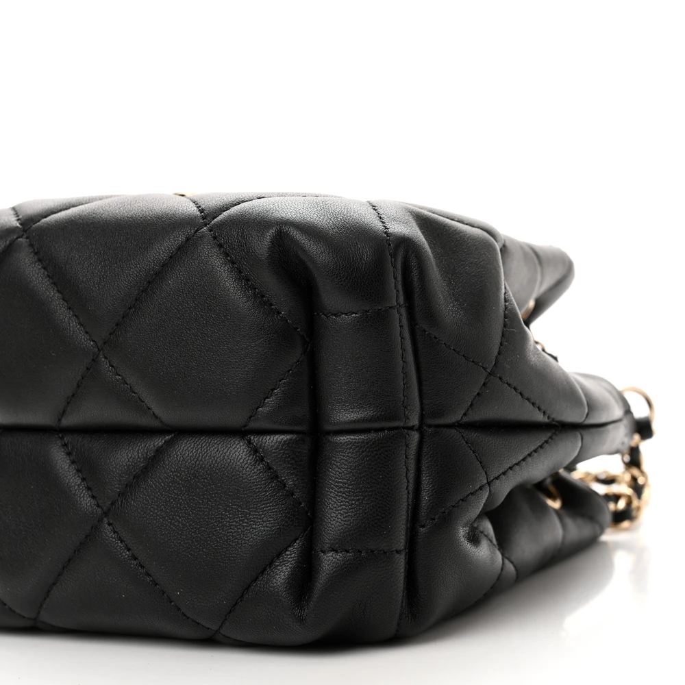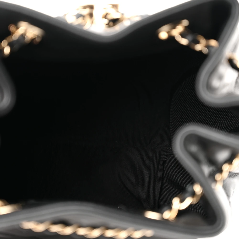 Chanel CC Dweller Drawstring Bucket Small Black Quilted Lambskin Leather Light Gold Hardware
