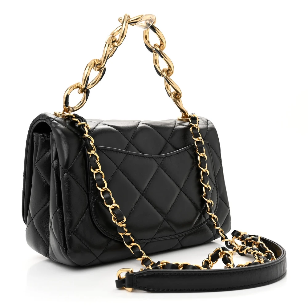 Chanel Color Match Flap Small Black Quilted Lambskin Leather Gold Hardware