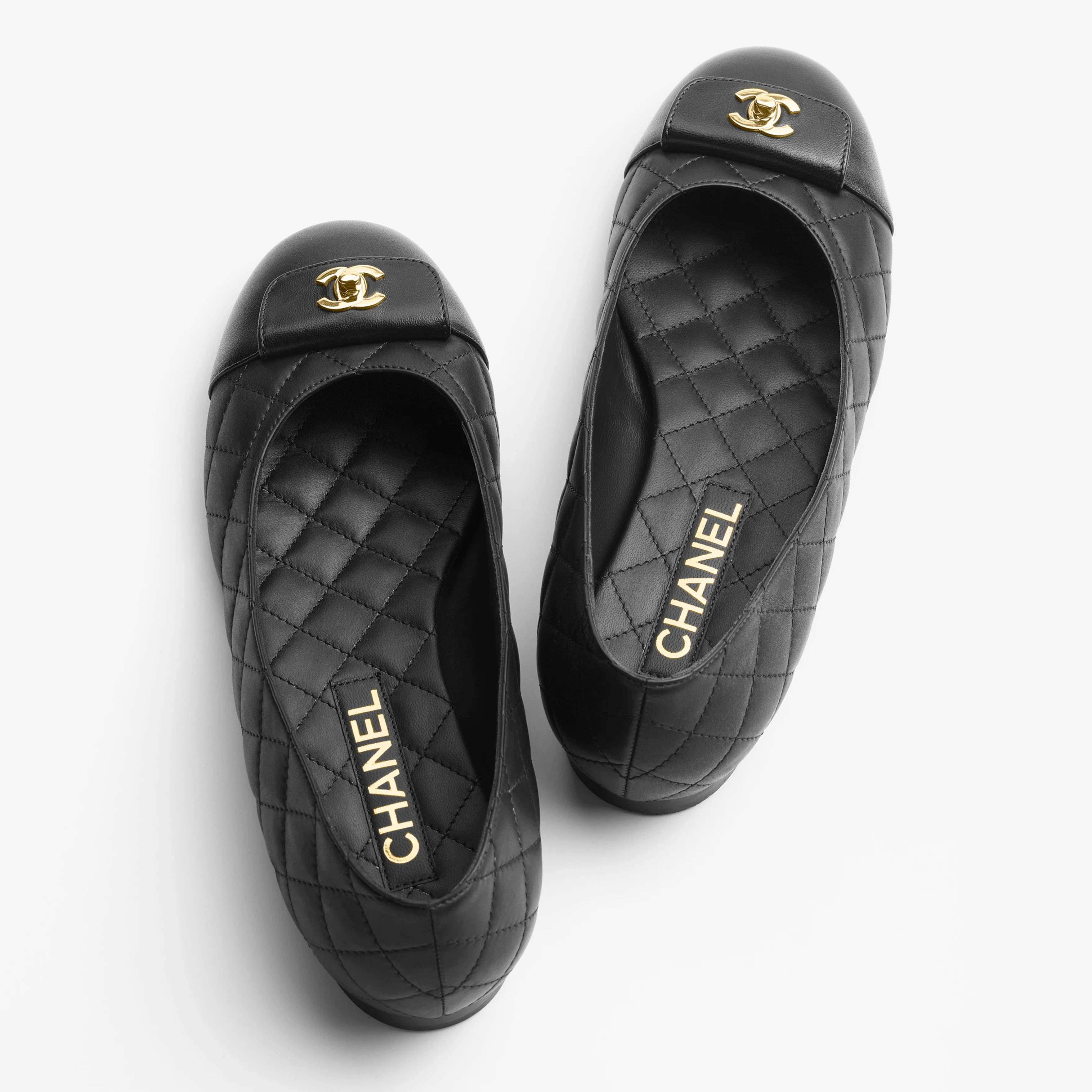 Chanel Flat shoes calfskin with lambskin black Ballet Shoes