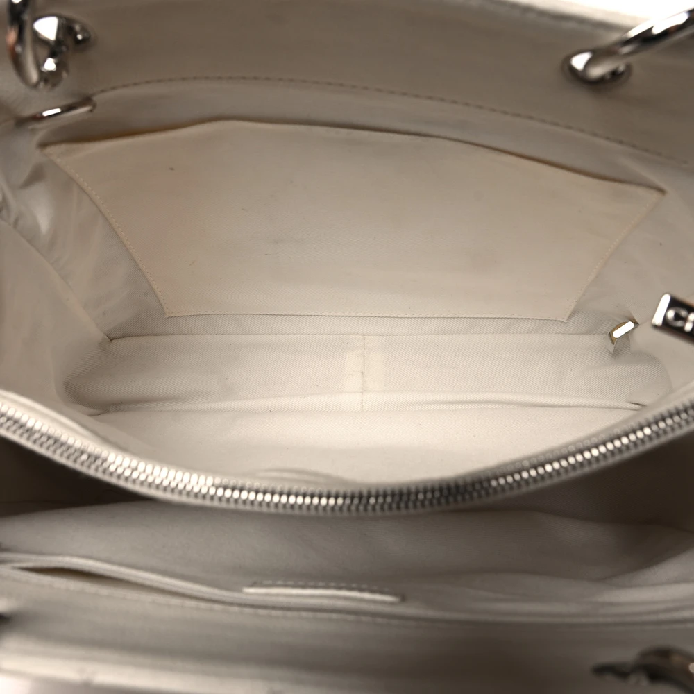 Chanel Grand Shopping Tote (GST) Large White Quilted Caviar Leather Silver Hardware