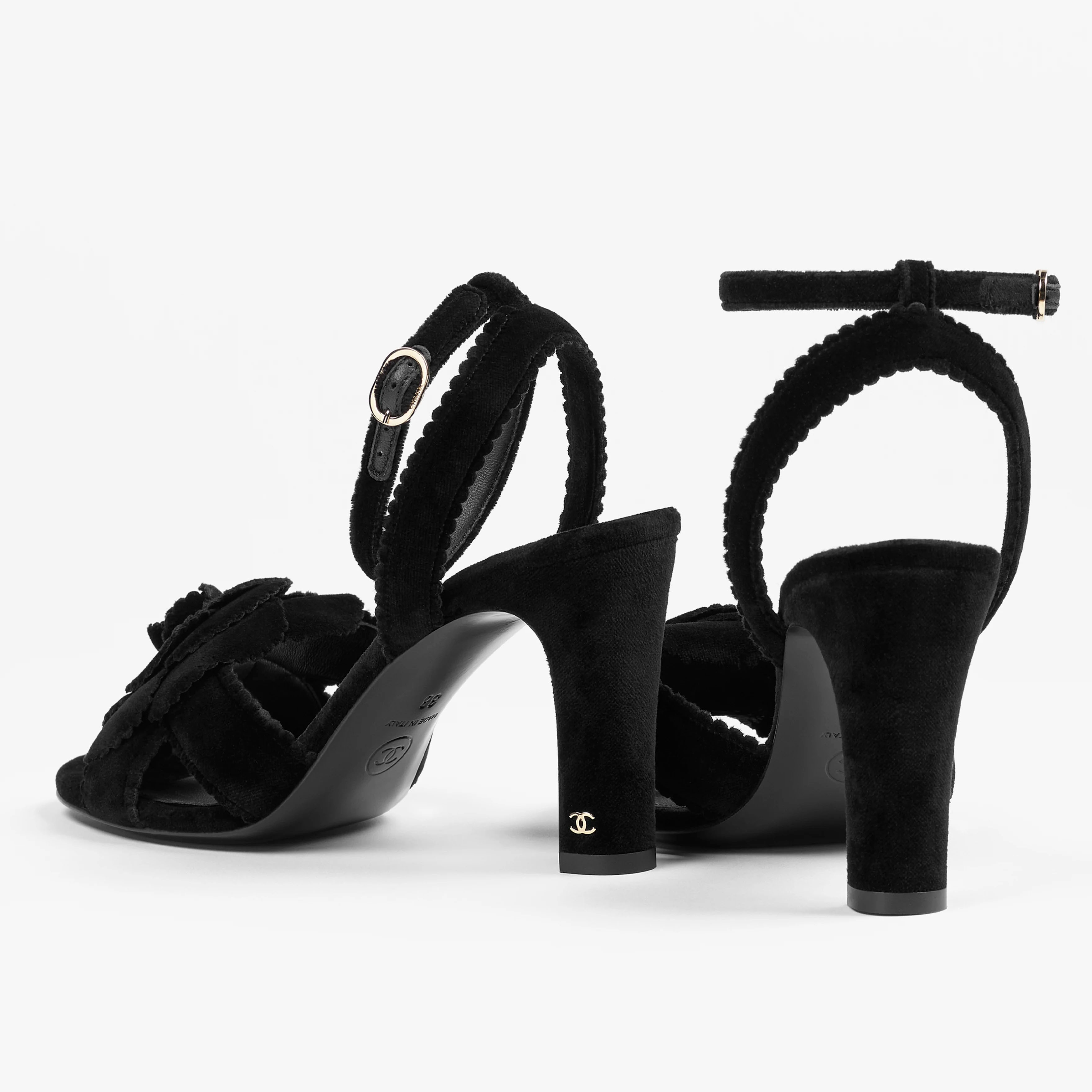 Chanel grosgrain, rhinestone and metal Black sandals
